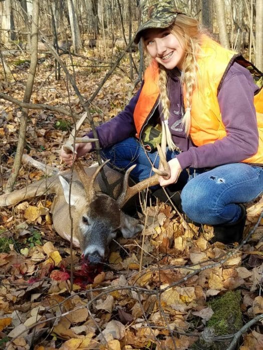 Just got back out to the woods after grabbing a bite for lunch, and in came this buck. Her dad had just went to his blind and was in the process of texting her that he had jumped a couple deer when he