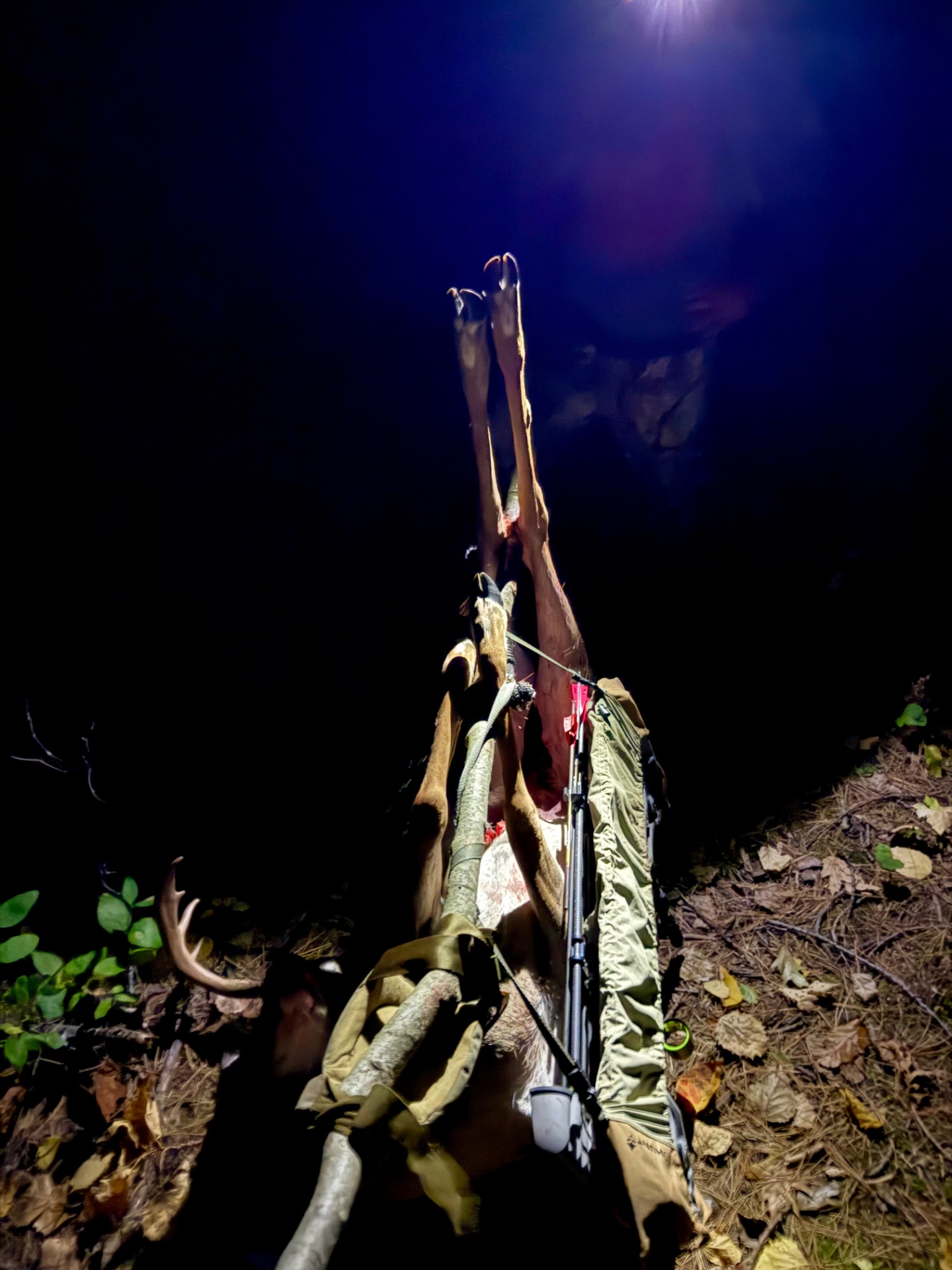 Scouting paid off. I found this historical rub line early spring. Scouted my way in and set up once I found a fresh rub. I was fortunate to set up correctly and he read the script. 20 yard quartering away shot, double lunged him and he crashed about 75 yards away.