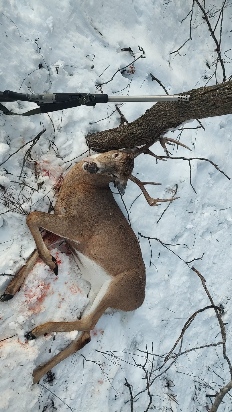 We’ve been watching this buck since velvet haven’t had and chance of a shot between me and the wife and he finally did around 4 o’clock in the afternoon a doe walked out and shot her then 10min later he walked out and dropped him the ol 450 bushmaster gets it done once again