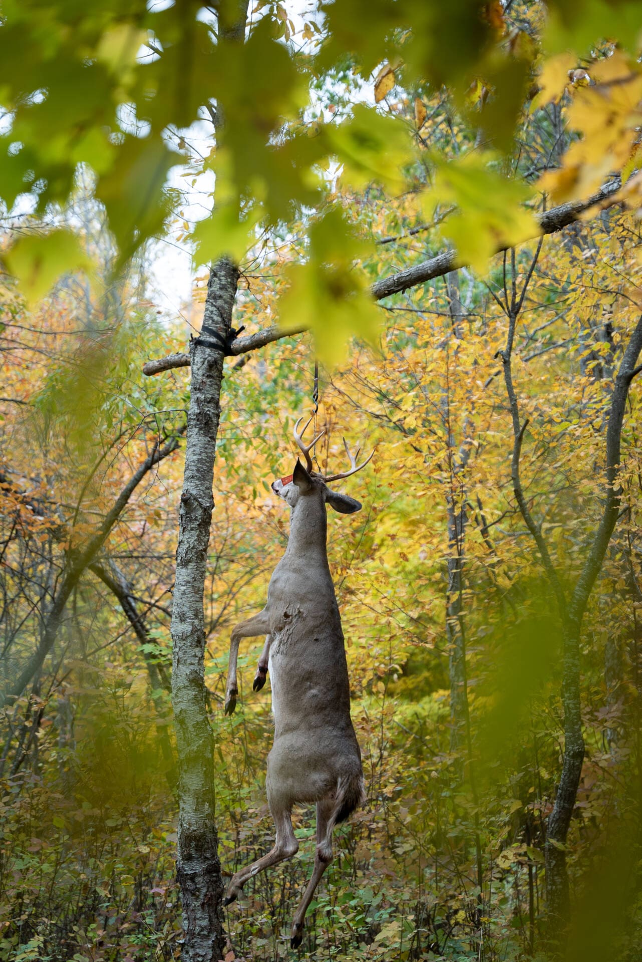 Kevin Leach of Lattitude outdoors, first time in a new piece of public land he had scouted from the road a few weeks back. He picked the right tree and they got it over his shoulder with a high quality camera. Picture was taken Saturday afternoon at our deer camp as the guys where out on another good bucks blood trail.