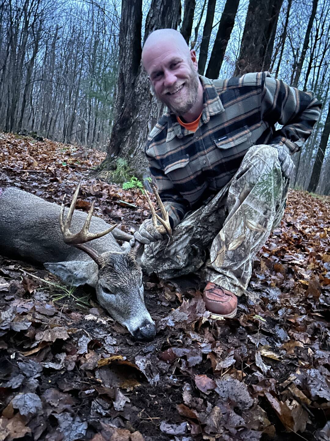 Had a rain day at work so I took the opportunity to sit in the woods. Had been analyzing trail cam pics and came to the conclusion this guy was bedding nearby. After sitting for two hours and not seeing anything I decided to blind call with some grunts and a few bleats. Within 5 minutes this guy walked into my lane at 20 yds. Dropped him right where he stood.