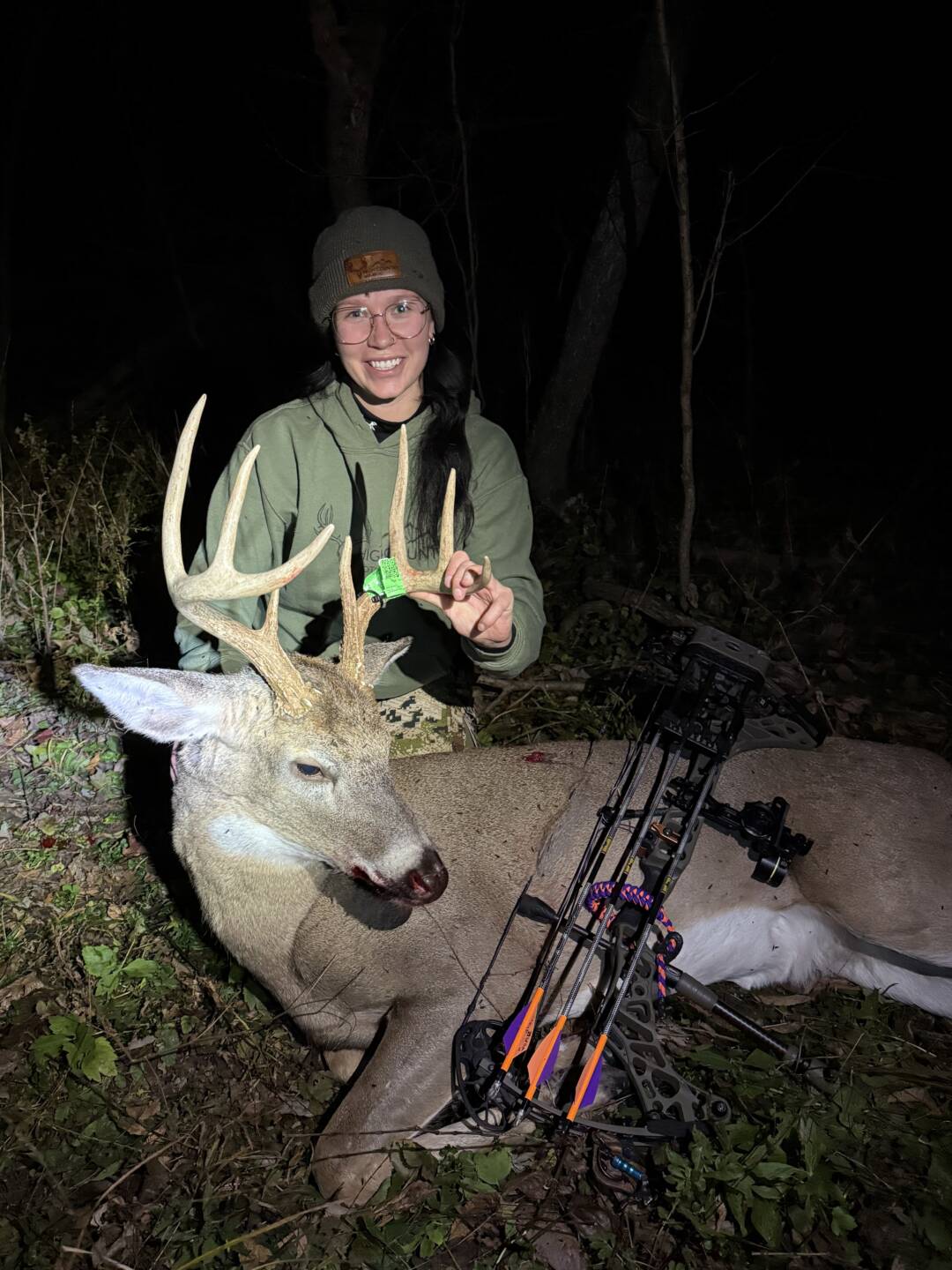 I was able to finally connect with this buck I’ve had on camera since June, with his last picture being in early August when he turned a ghost. Over the last week, he made a couple daylight appearances, but I was Upnorth hunting with Dad when he did. Last night, I saw the SE wind & decided to go for it! I hit a grunt sequence at 5:12, and I watched him come in on a string behind me at 5:15. A 25 yard shot and I watched him fall 60 yards behind me. Was a matter of 8 seconds from seeing him and rear-facing my tree to take a shot.