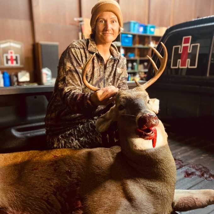 This hog came in following 2 mature does. At 43 yards he wasn’t stopping to give me a shot. Luckily something caught his eye to his left and I let it fly. Perfect shot, but after 2 hours found him still breathing. Had to shoot again, still got up and ran 25 yards before crossing the bridge. Thankful for the help hauling this one out.