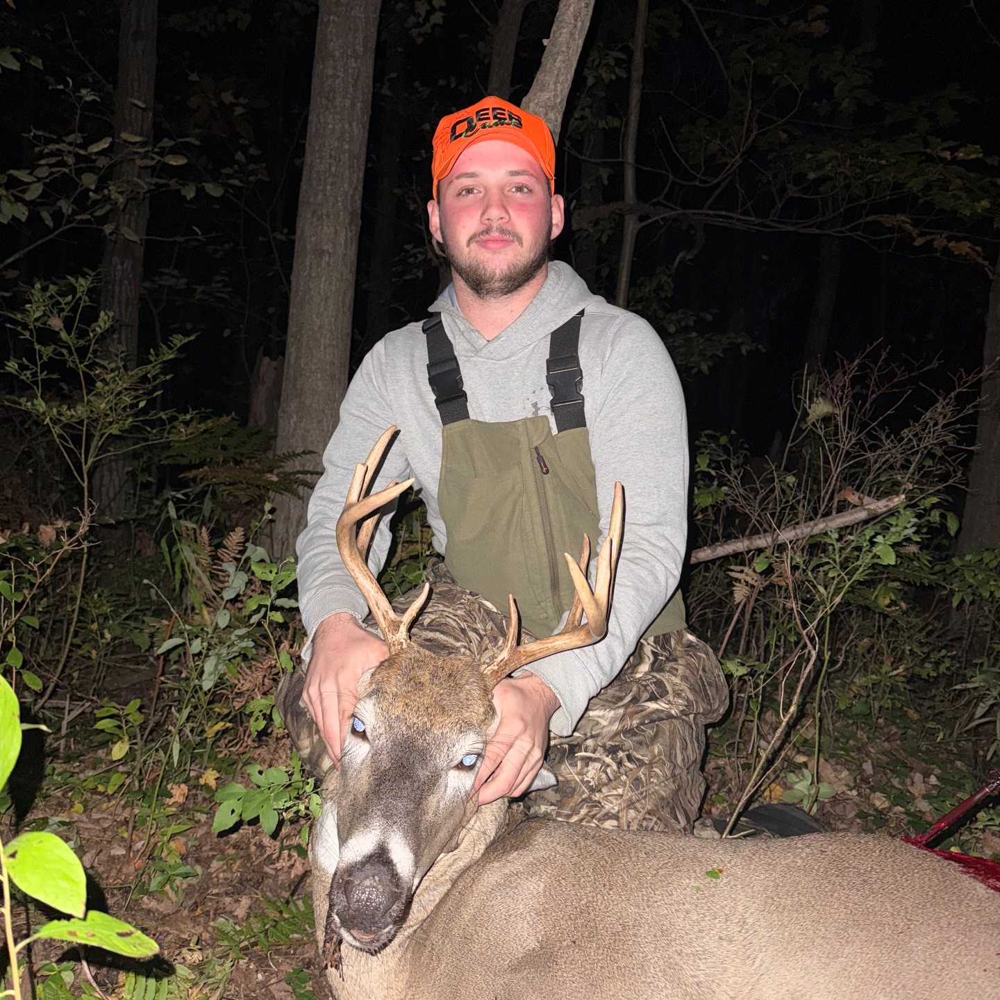 I have been hunting this buck for a solid two weeks straight and it came down to my last night. I see a little spike walking around the food plot then I see him not far behind he took a solid 30 minutes to come into shooting range and he finally did I dropped him at 30 yards