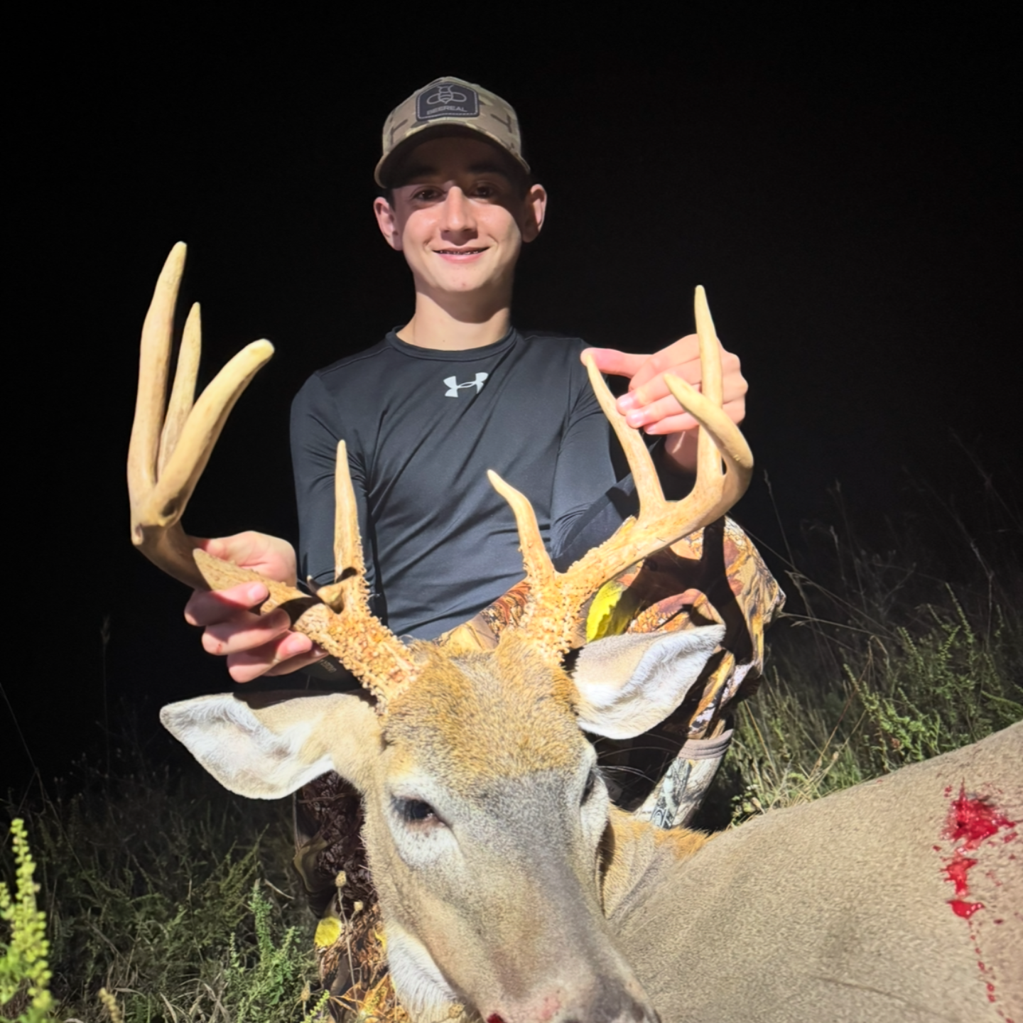 We got out to the blind around 5:00pm. It was a very slow evening not seeing a single deer until about 15 minutes before dark this 8 point stepped into the field at 25 yards. I shot him as soon as he stopped, he went about 100 yards. He is my biggest buck to date!