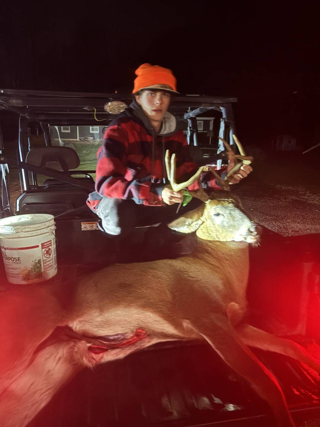it started getting dark and i had only seen a few doe all day i was packing my stuff up and took one last look and seen him creeping through the woods and knew he was big just by the size of his body. so i put my scope on him shot and hoped for the best lucky he dropped with heart shot