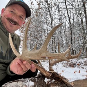 First sit in stand had a doe walk by eating acorns he was about 30’ behind her looking to breed and my beast broadhead took care of the rest. My first drop tine buck