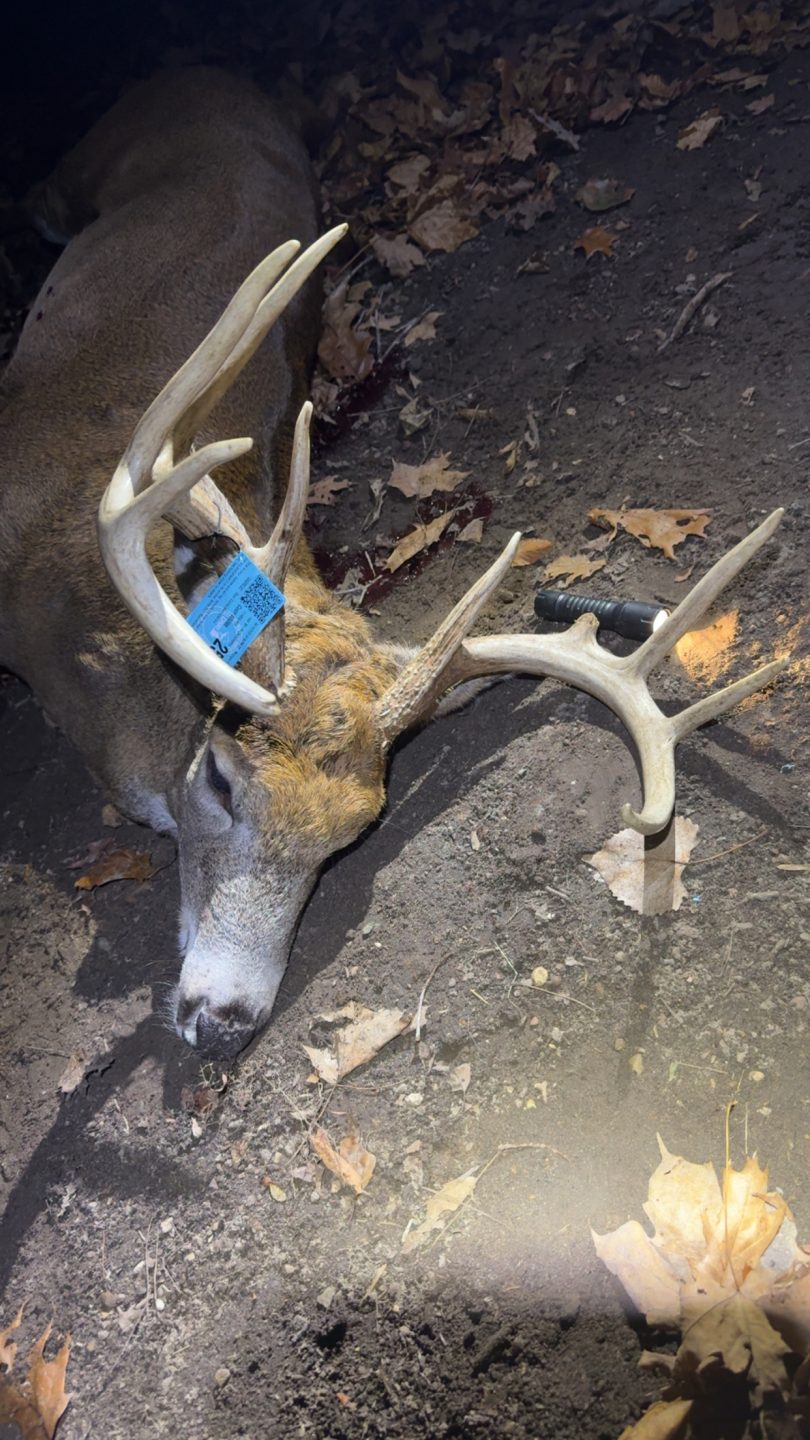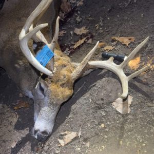 After letting smaller deer walk all day finally this buck come out of the swamp chasing a doe. Hit him with a doe bleat and he stopped just long enough to get a shot on him at about 100 yards.
