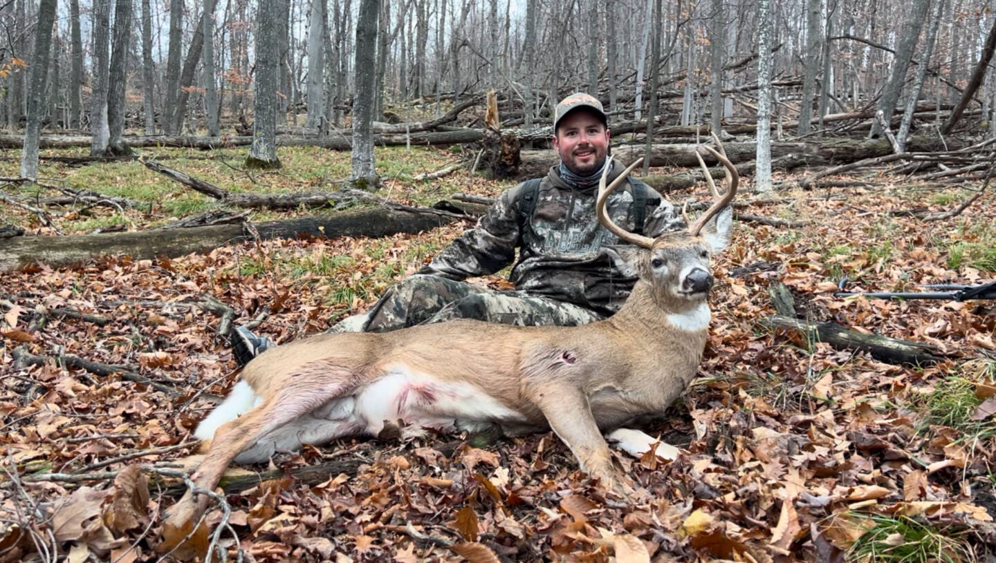 Set up with my plan in mind, made a move to some compounding features based on the 24 mph winds to set up in an area where that wind would be sheltered or blocked some.. and I was right it was. Got into some thicker cover next to bedding for cruising bucks down wind of bedding and a big scrape line. This guy came out nice and early and delivered a shot that he didn’t run 50 yards dropped in sight. Second best bust and second one of the season my best uck was taken 4 days earlier which I also submitted.