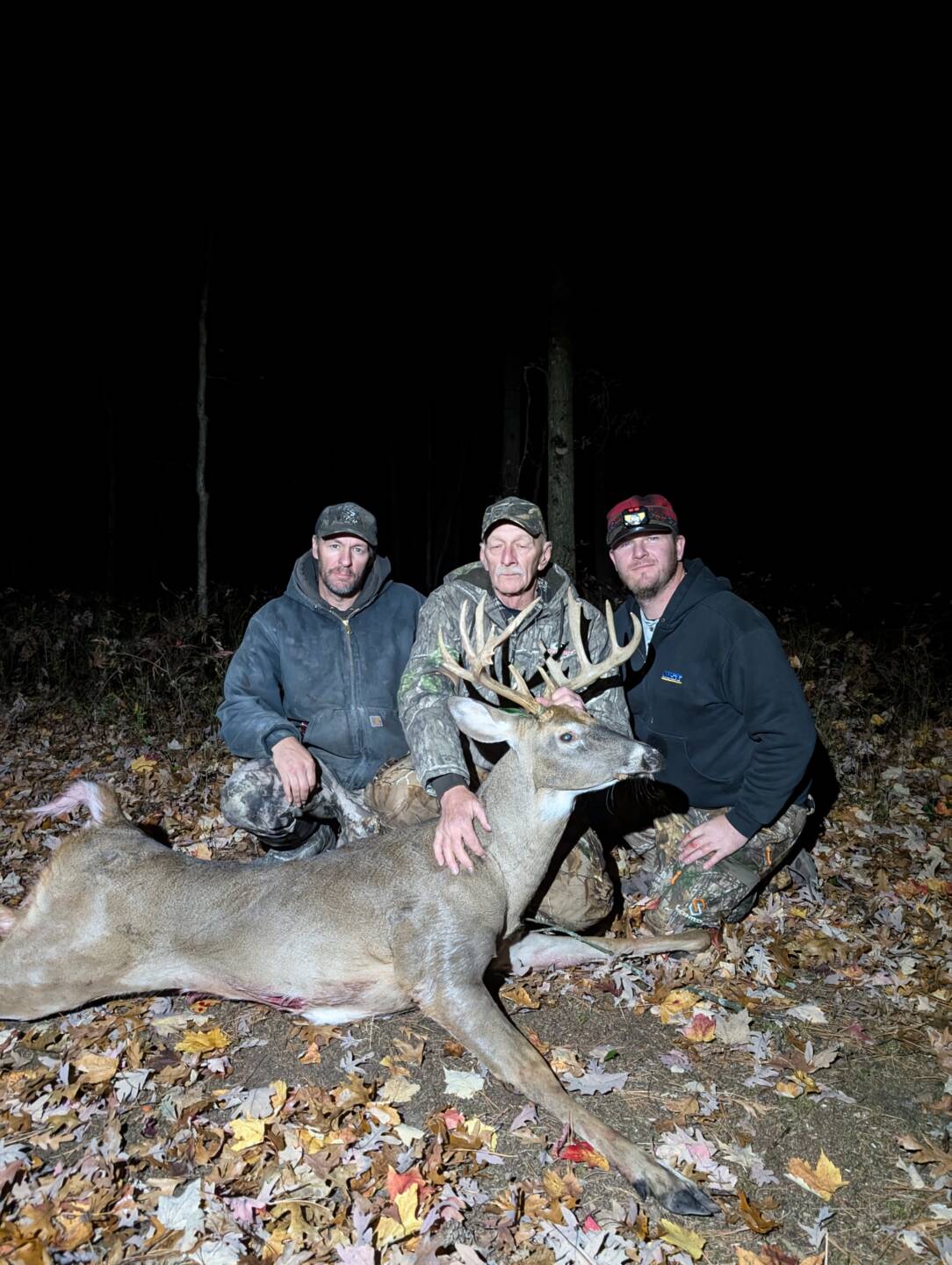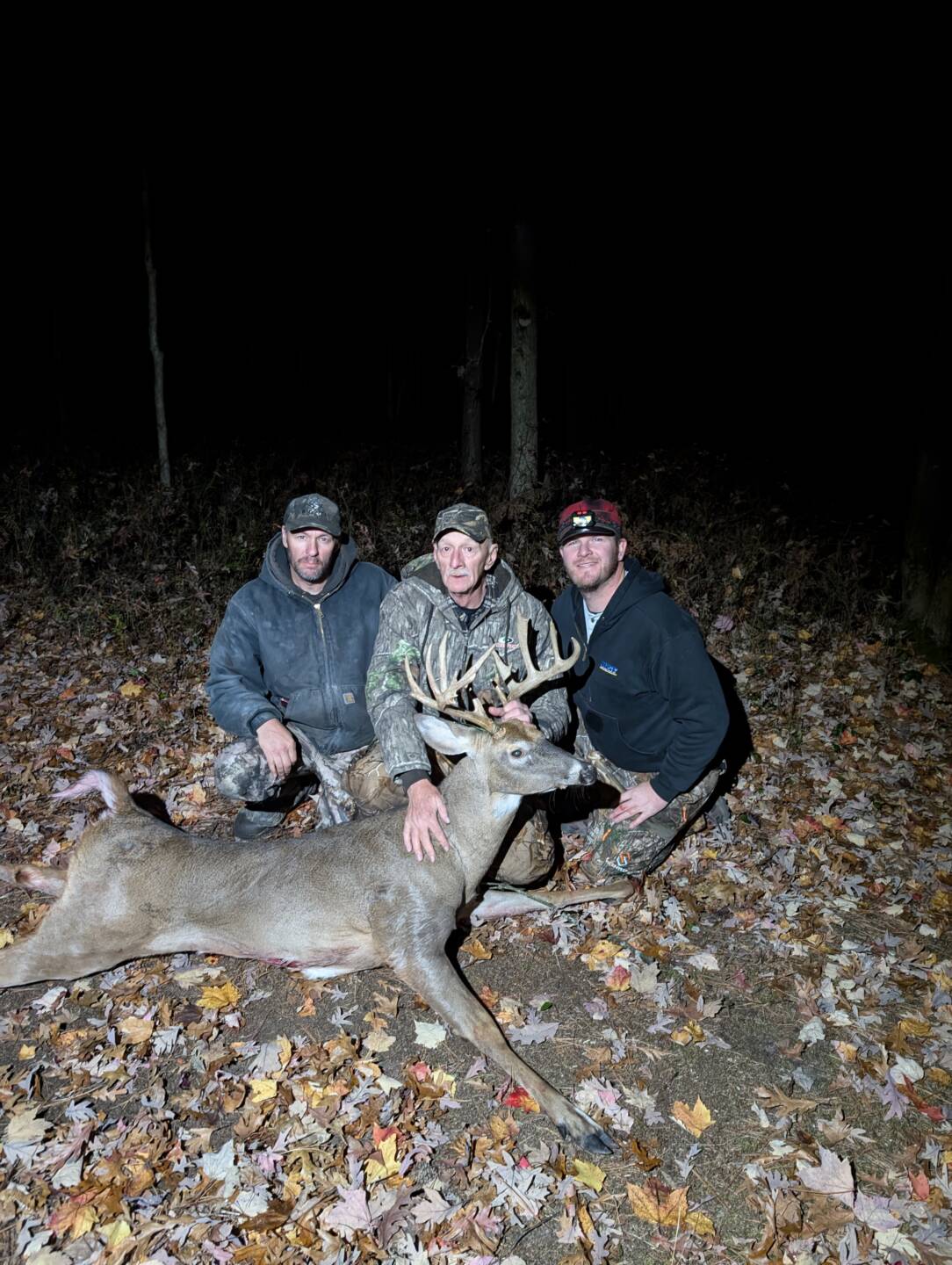 My dad hasn’t hunted much or harvested a deer in almost 20years, we finally got him to get out with a crossbow, my brother set him up a tent and after sitting for 20 minutes a buck we have no knowledge of comes strolling thru just after 5 and the rest is history. Think we all were happier than he was!!!