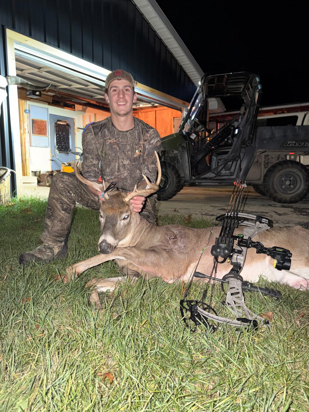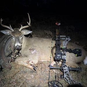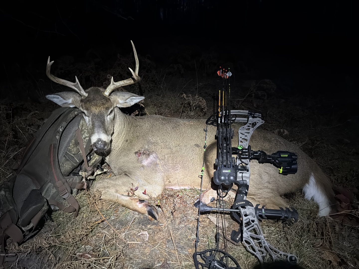 I watched him descend to my left after a doe passed through. He made a fresh scrape. As he began walking out of the brush towards me, I noticed a second, smaller buck approaching behind him. The two bucks started to square up, but then the doe ran away. The bucks moved a bit, then began walking towards each other. I grunted at him and managed to stop him in my shooting lane. I let him have it at 13 yards, he didn’t run 30 yards before taking his last breath. The G5 mega meats made a red carpet right to him. I didn’t immediately get down because the second buck returned and started looking around, and smelled the arrow. I could have tagged out in one night, but I decided to pass on the second buck.