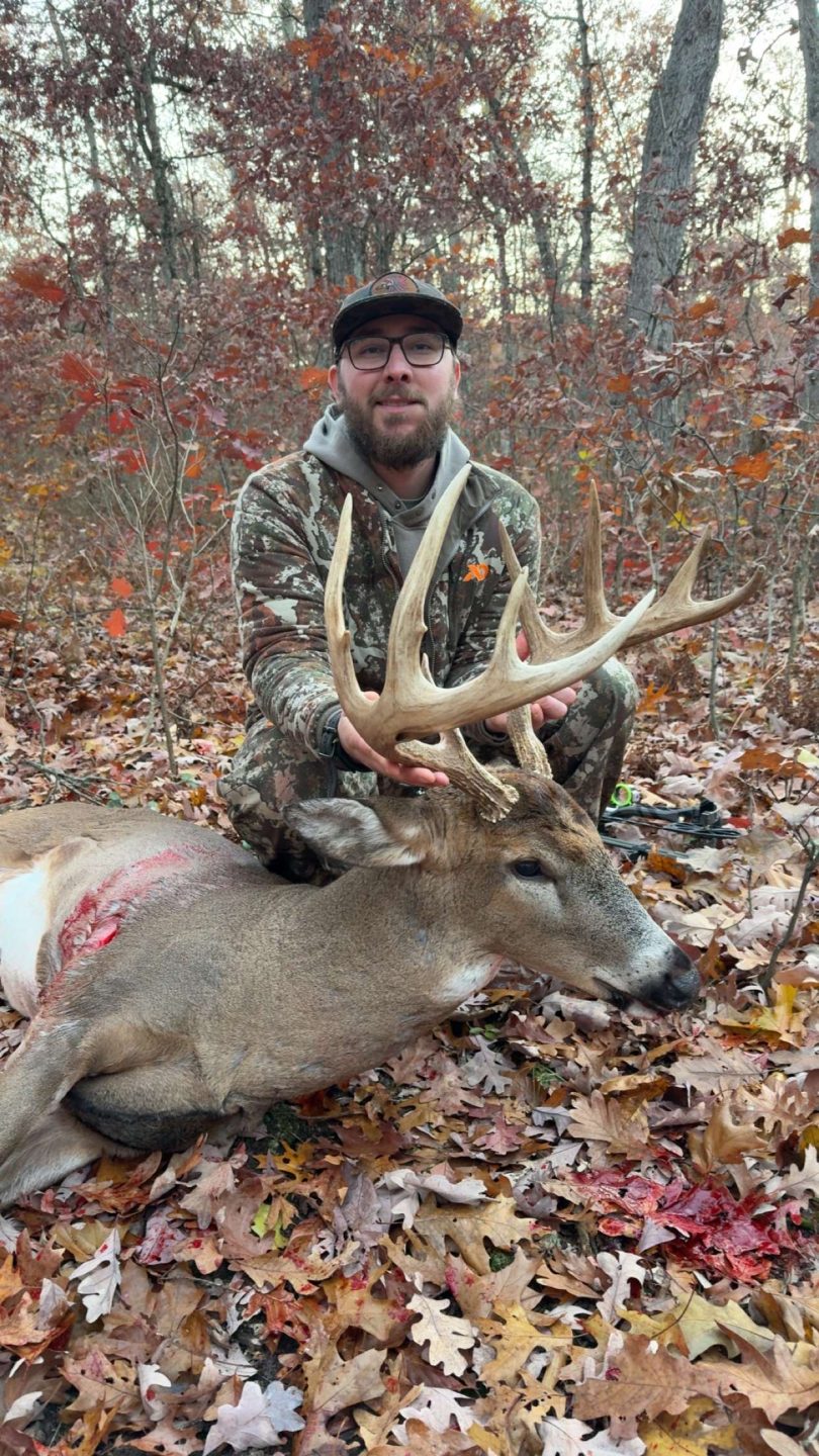 I had an encounter with this deer the week before and the does he was with got a whiff of me at the wrong time. The night of the 7th I heard 3 estrus bleats right in a row about 4:15pm, and 20 mins later he came out of the bedding and I was lucky enough to be in the right spot. Biggest buck to date. Ended up scoring 149 4/8.