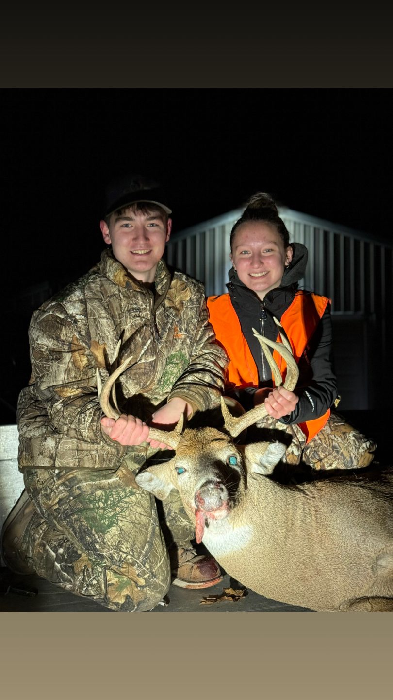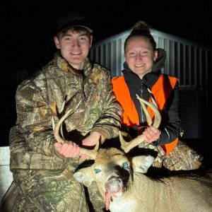 Ended up watching a bunch of does for a while at 60 yards just eating away. Then all of a sudden I see something crest the hill chasing a doe right to me. Well ended up being him broadside at 40 yards.