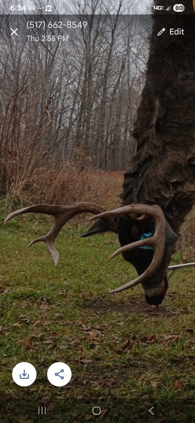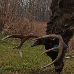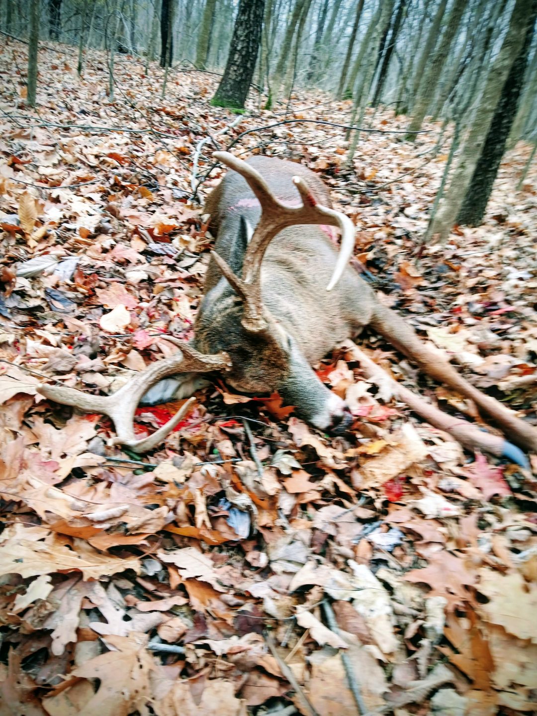 Got out of stand and decided to check a swamp and seen a doe get up to start walking while other doe joined. I thought to myself there’s a buck in here so I took 5 steps in and he jumped up to start running. I whistled and he turned left for a perfect side shot, I gave five minutes and couldn’t wait any longer to check for blood because he gave a look when shot at that he was hit and sure enough the hornady. 44 mag leverevolution did hit its mark at 50 yards. Blood everywhere and another 50 yards he lay.