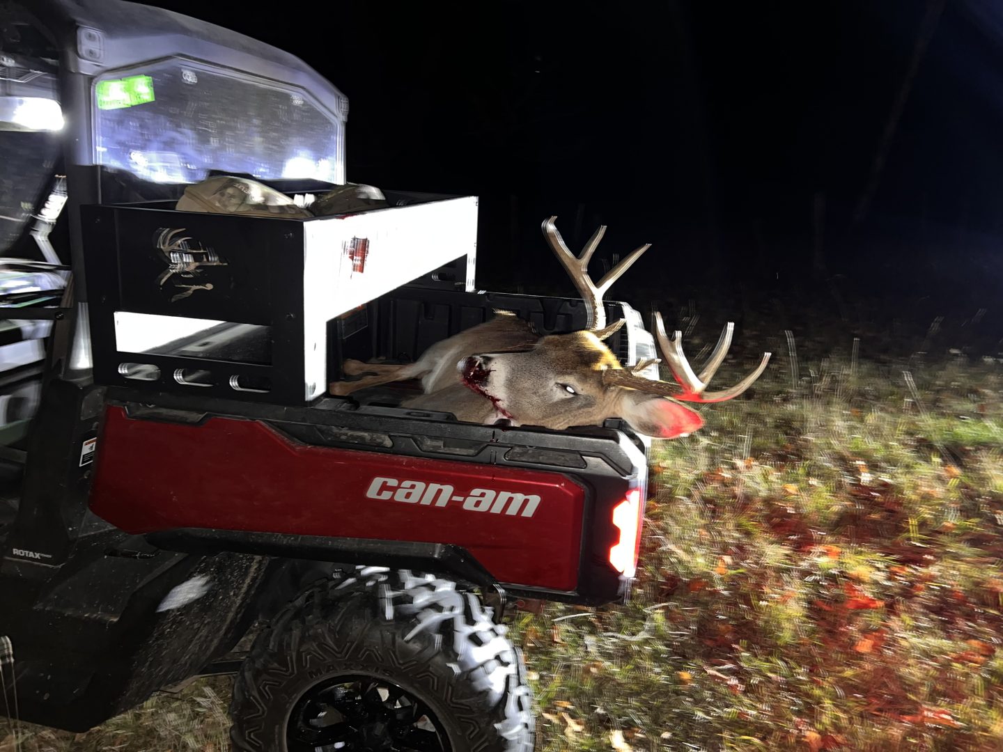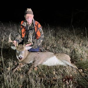 Watched the buck bedded down for 2 1/2 hours at about 250 yards. He finally got up and worked my way with some doe. He gave me a good shot at 150 yards and I took it.