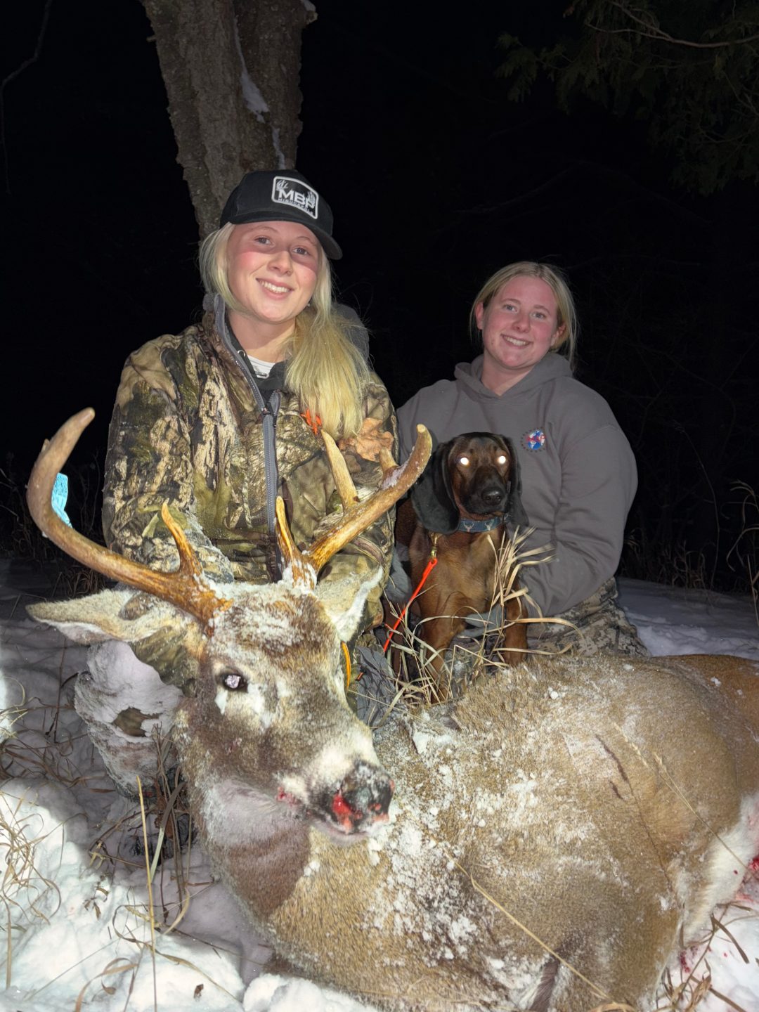 It has been a long bow/rifle season as she has not had a lot of time to hunt due to school, sports and work so on 12/11 when they were blesssed with a school snow day Mallorie and her sister Lauren took advantage and headed to the woods. The deer are pretty picked over this late in the season but she was lucky enough to have this heavy horn 8 pt still checking scrapes and dropped him in his tracks around 2 in the afternoon. He has several broken tines most likely from the rut. She was happy to finally get on the board!