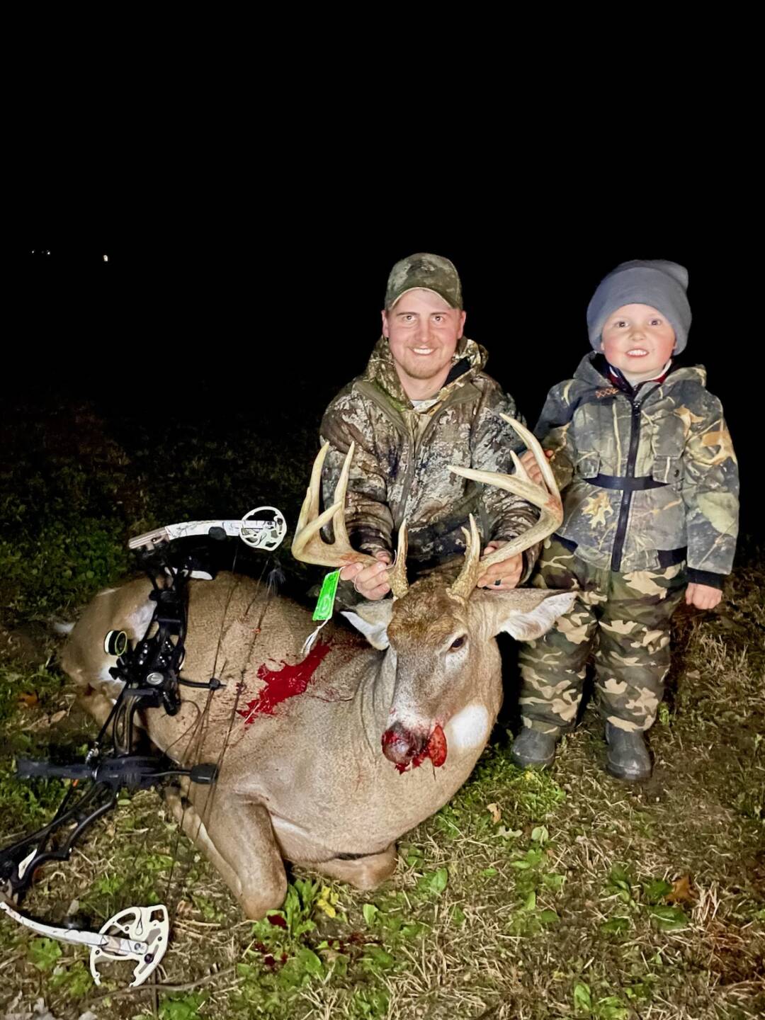 I was fortunate to put a tag on a nice 12-point tonight. The best part was having my 3 year old son sitting right next to me in the ladder stand, where he got to see the entire hunt unfold. I told him to not talk because there was a big buck coming. He continued to ask is he coming, is he coming, is it big, is it big, are you going to shoot it, are you going to shoot it , I see it I see it. Thankfully he was just whispering all these questions lol. 35yrd shot.