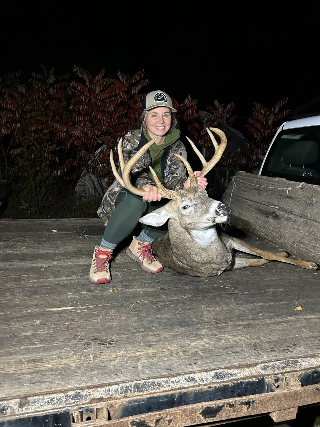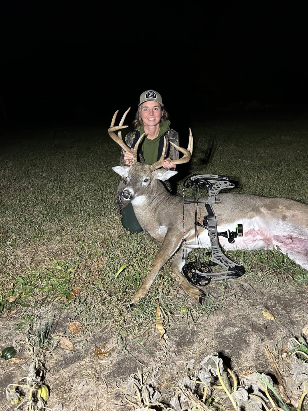 Husband set me a stand this afternoon where I had been seeing some decent bucks from different sits. He headed off to the daddy daughter dance and I went to the woods. A little after 7 this guy came out and gave me a 35 yard shot.