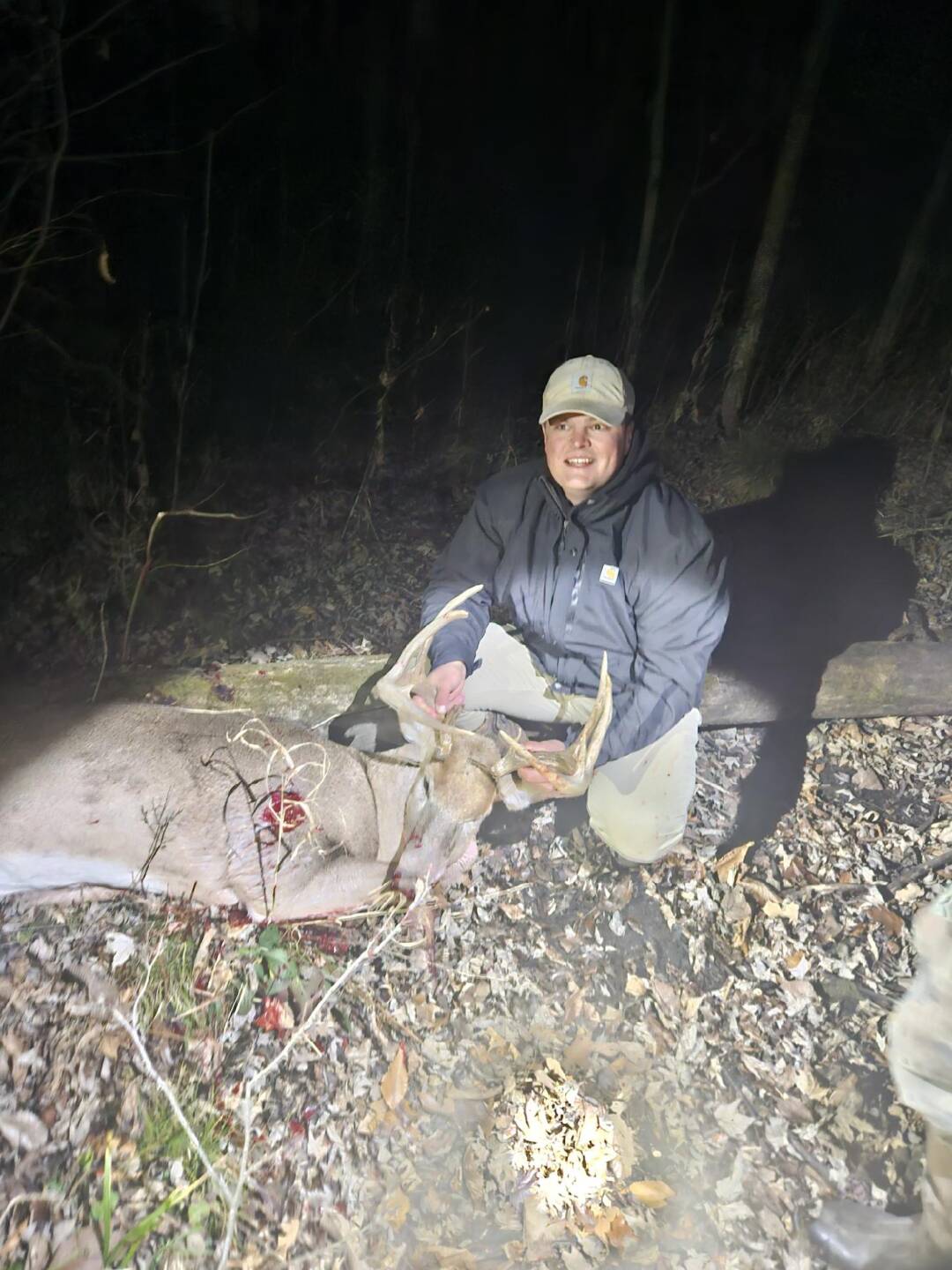 I watched this buck skirt the edge of my food plot in pursuit of a doe. After a couple attempts of grunting he didn’t seem to care and disappear. About 20 minutes later he circled behind me giving me a 20 yard broadside shot