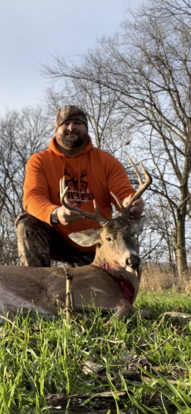 Spotted him on the other end of the field about 500 yards away at day break. Watched him with a doe for about 30 minutes then a truck stopped on the road, I’m guessing looking at him in the field. The truck had his attention for a minute and then he started trotting my way. As he was trotting, a doe popped out of the ditch and he started chasing her right in front of my blind. The rest is history.