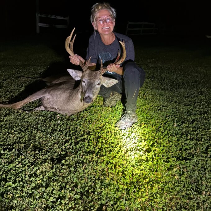My wife decided she wanted to hunt this year so was practiced with the crossbow and she felt confident.first time hunting she had a nice one at 46 yards but didn’t wanna take the shot,third time she went out by herself and was patient got a nice one at 28 yards and made a great shot