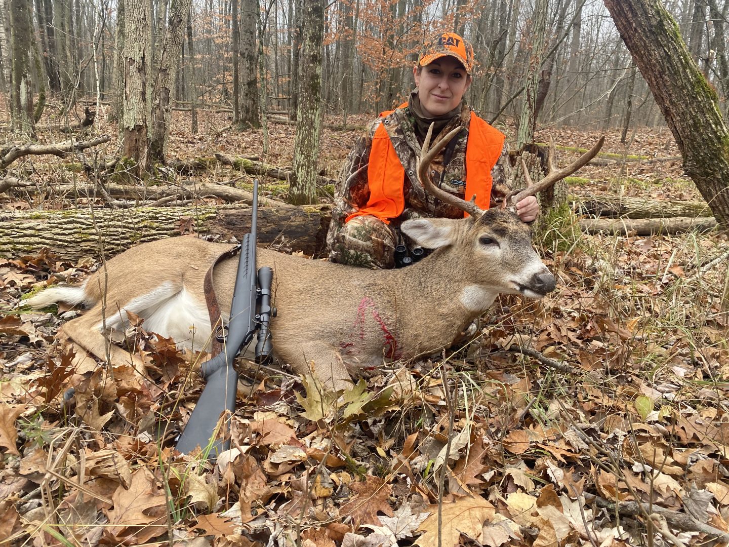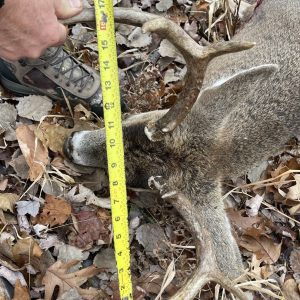 Unfortunately I Missed my first shot as he was trotting after a doe. I reloaded he just stood there. I took a chance Shot again & he dropped. 125 yard shot