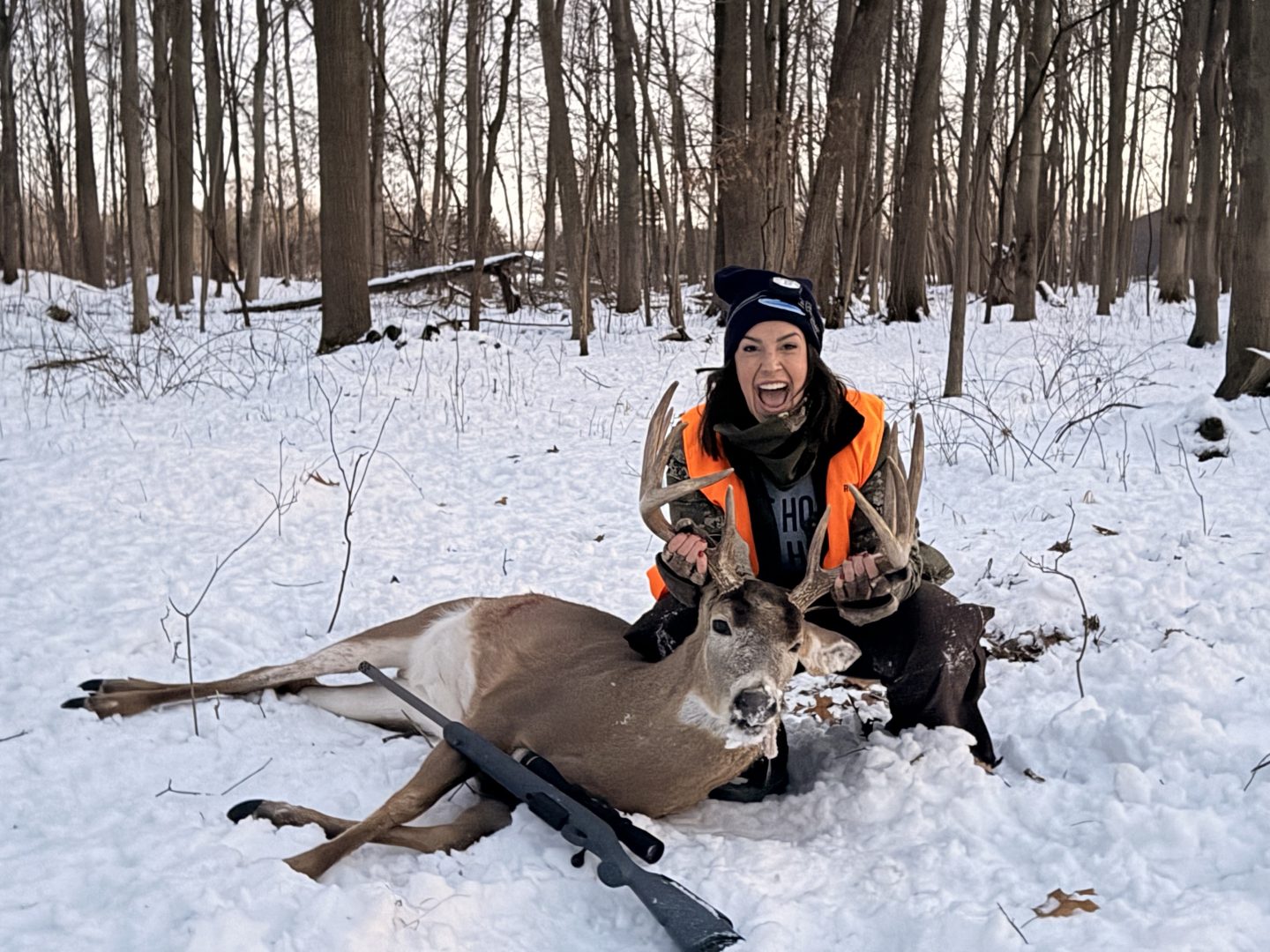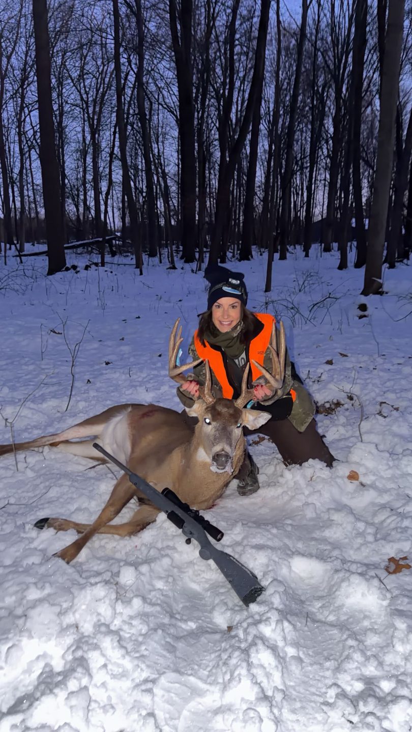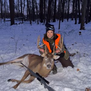 I missed him twice in bow season… My dad missed him one if rifle. I’ve gone out countless times waiting for this beast to come back. This morning I prayed god would bring him to me, he did but this morning wasn’t my time and a turkey scared him away. I just thought it wasn’t my time. I was determined so I went back out to the woods at 2:30 at 4:15 he came back! Only to be spooked by something on the neighbors property. So I talked to god a little more and said “please lord if it is your will bring him back and have him choose me. If not lord please allow to to at least see him again . This deer is the first deer I’d seen in person that was this big! You had around 5 o’clock I was looking at another deer in the back field. It looks pretty big. Couldn’t really make out what it was so I just kept my eyes on it. One out of nowhere my buddy goes Melissa. He’s back. Look about 40 yards to your right and there he was….! I tried to collect myself get control of my breathing because if I was to shoot this thing, it would be my first buck! I heard the neighbor shoot I thought great I’m gonna lose them again, but that was not the case he stuck around and when he took about two steps to his left, I was able to get a nice shoulder shot! I’m so grateful for the opportunity that God provided! What an awesome harvest! I was proud that I could share this experience with my dad, but also my daughter’s! That hard work and dedication pays off!