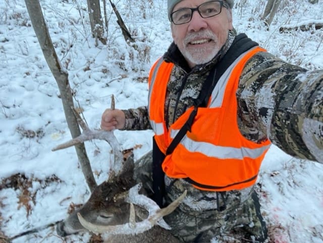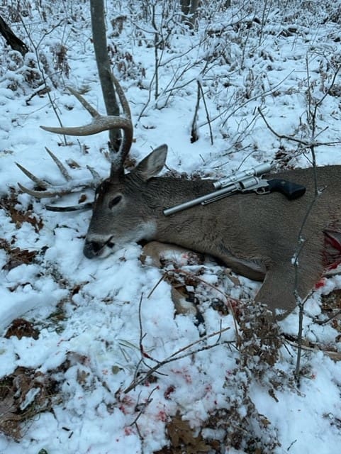 All day hunt beginning 0630, froze until he showed up around 25ft away offering a good broadside for a shot, he went directly down.