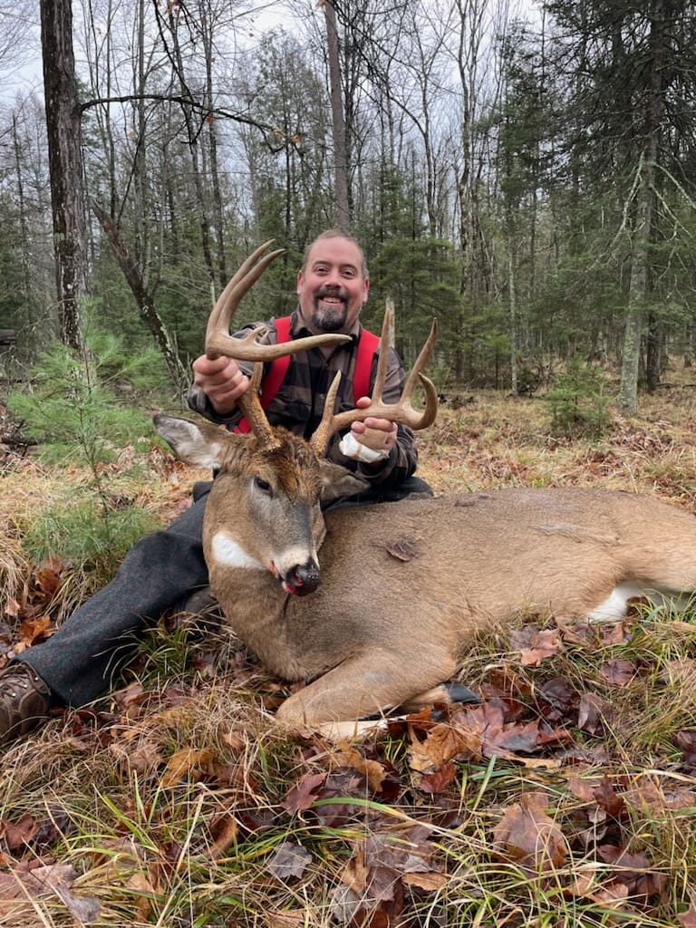 Sat 2 days with my father in law and he had to head home. So I set off into the swamp by myself with a sleeping bag and a rifle. Doe blew by and he was standing there. 12 seconds later he was dead. 19 years of passing bucks to have a buck of a lifetime.