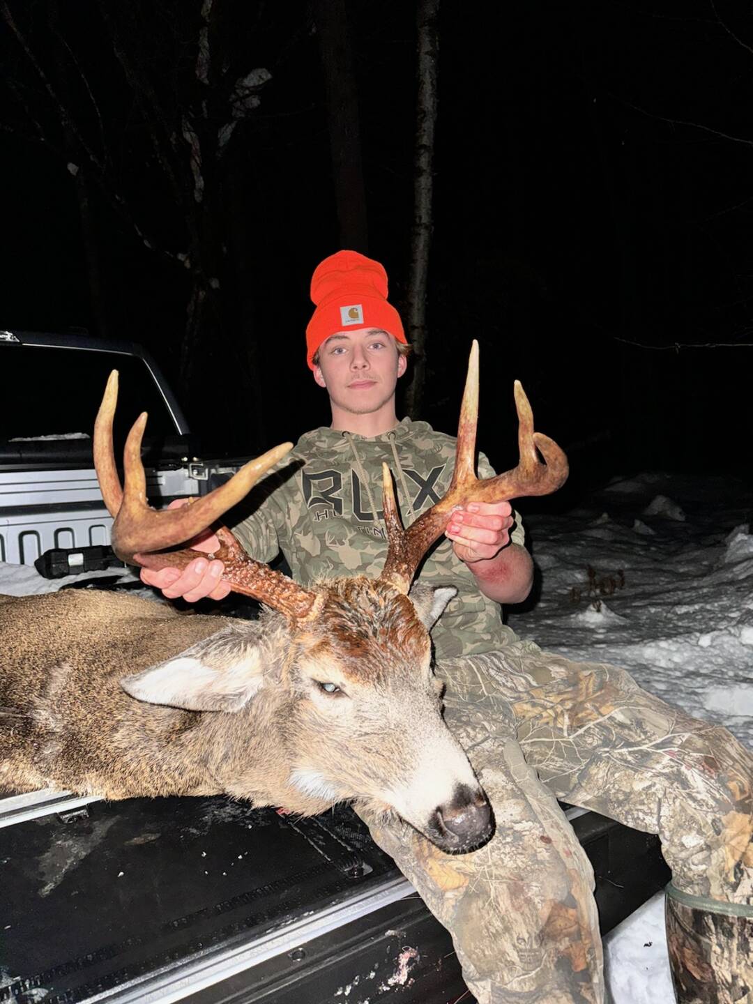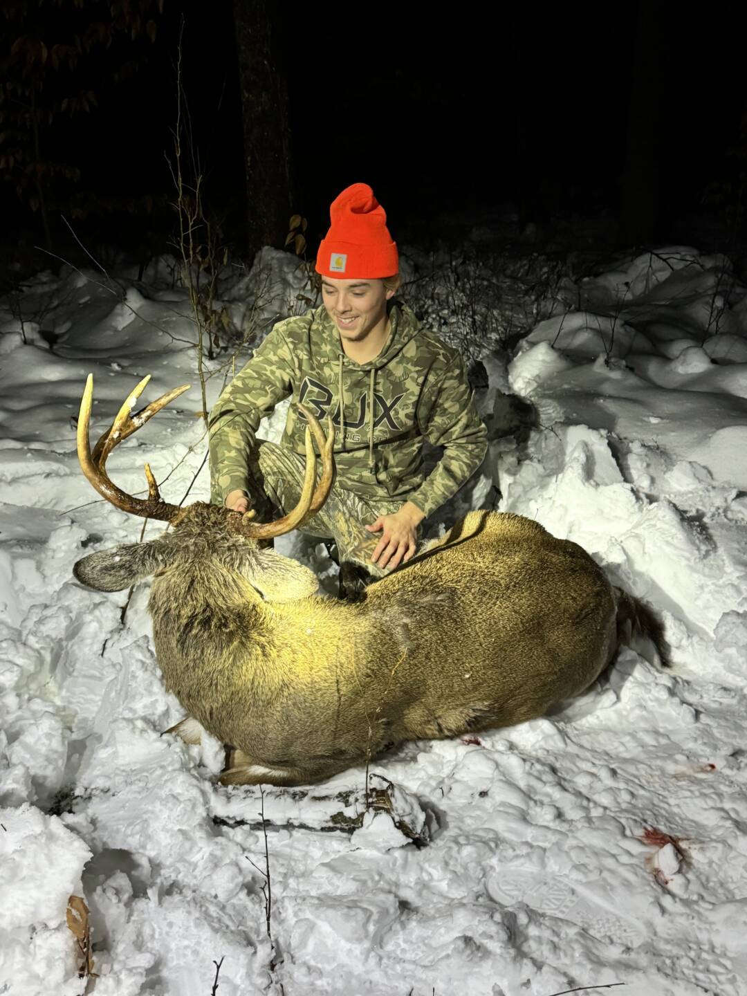 I chased this deer all year long. I had two encounters with him and neither of them I could get a shot off. One was during early bow season. He was hot on a doe while I was walking into my stand all I had with me was my compound bow, and I was unable to get a shot off so I just watched him runoff. The other encounter had with him was during early rifle season and he actually caught wind of me and spooked, and I watched him run through the scope of my gun through the back of the field unable to get a shot off again, but on December 7 I got a picture of him going into my food plot at 4:30 PM so I hurry up through all my hunting gear on And put the spot in stock on him. I was able to peek out of the ravine that I was walking through and lean up against a tree for a 250 yard shot and I was able to connect and he didn’t go 50 yards. When I walked up on this deer is when the emotions hit me I almost broke down into tears I’ve hunted 100+ hours for this buck and I finally was to harvest him. By far the smartest deer I have ever hunted in my life. # A dream come true.