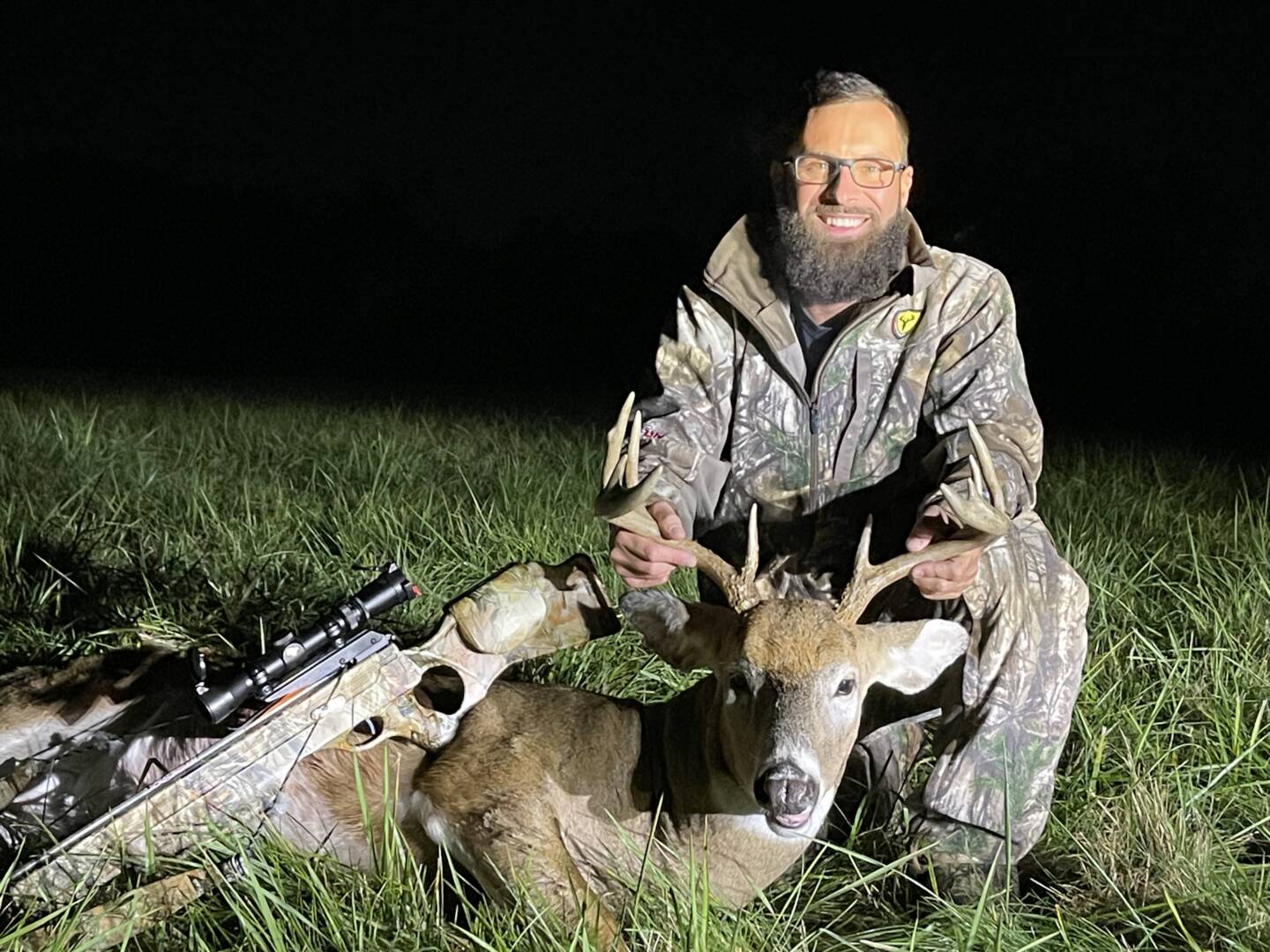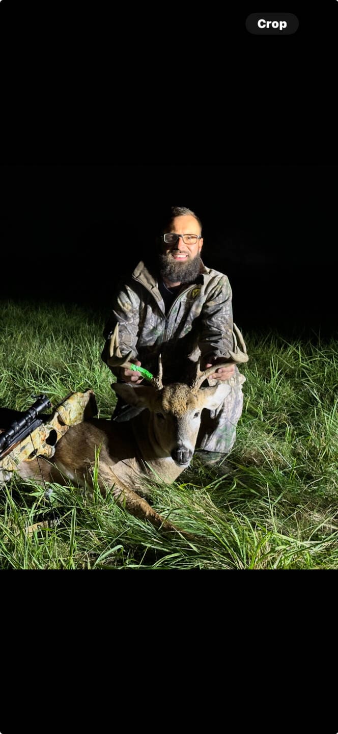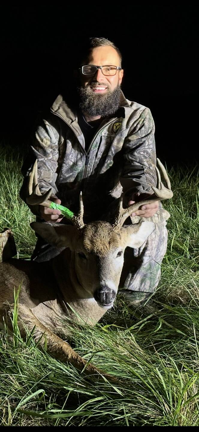 On the evening of October 17th (Hunter’s Moon) I was able to bag this beautiful buck as he was on the hoof chasing does heavy,Took a 40 yard shot. He ran 80 yards an dropped.