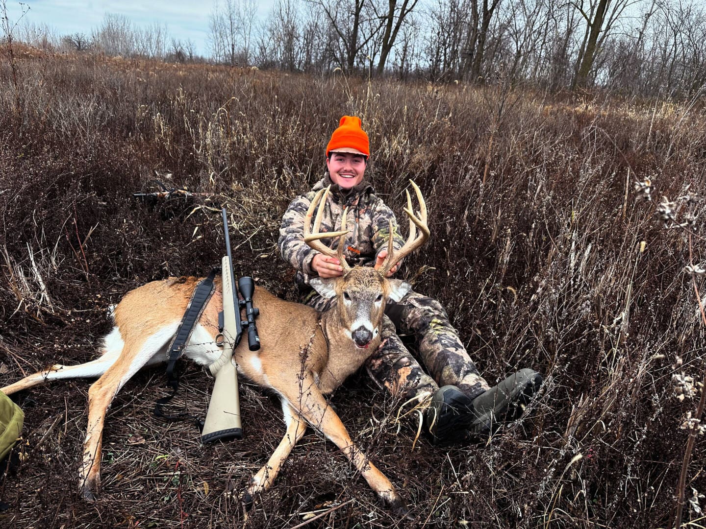 It was the 2nd time being out with my Dad all season, yesterday we saw tons of cruisers but never had the opportunity to pull the trigger. So fast forward to this morning, we get out to our stands a little later than we wanted to and it had been quiet and slow morning. Around 9:30am the morning quickly changed. I happened to look up and seen two doe’s about 60 yards away, the one in the back was looking behind and was fixated on something behind them, I look where she was looking and all I could see was rack. As I got ready he emerged from the tall grass and was right with the doe’s in the matter of seconds. I hit him with a quick “meh” and the rest was history. This hunt was super special to me because it wasn’t only my biggest buck to date, but I was able to shoot him with my dad being there. A memory neither of us will forget.