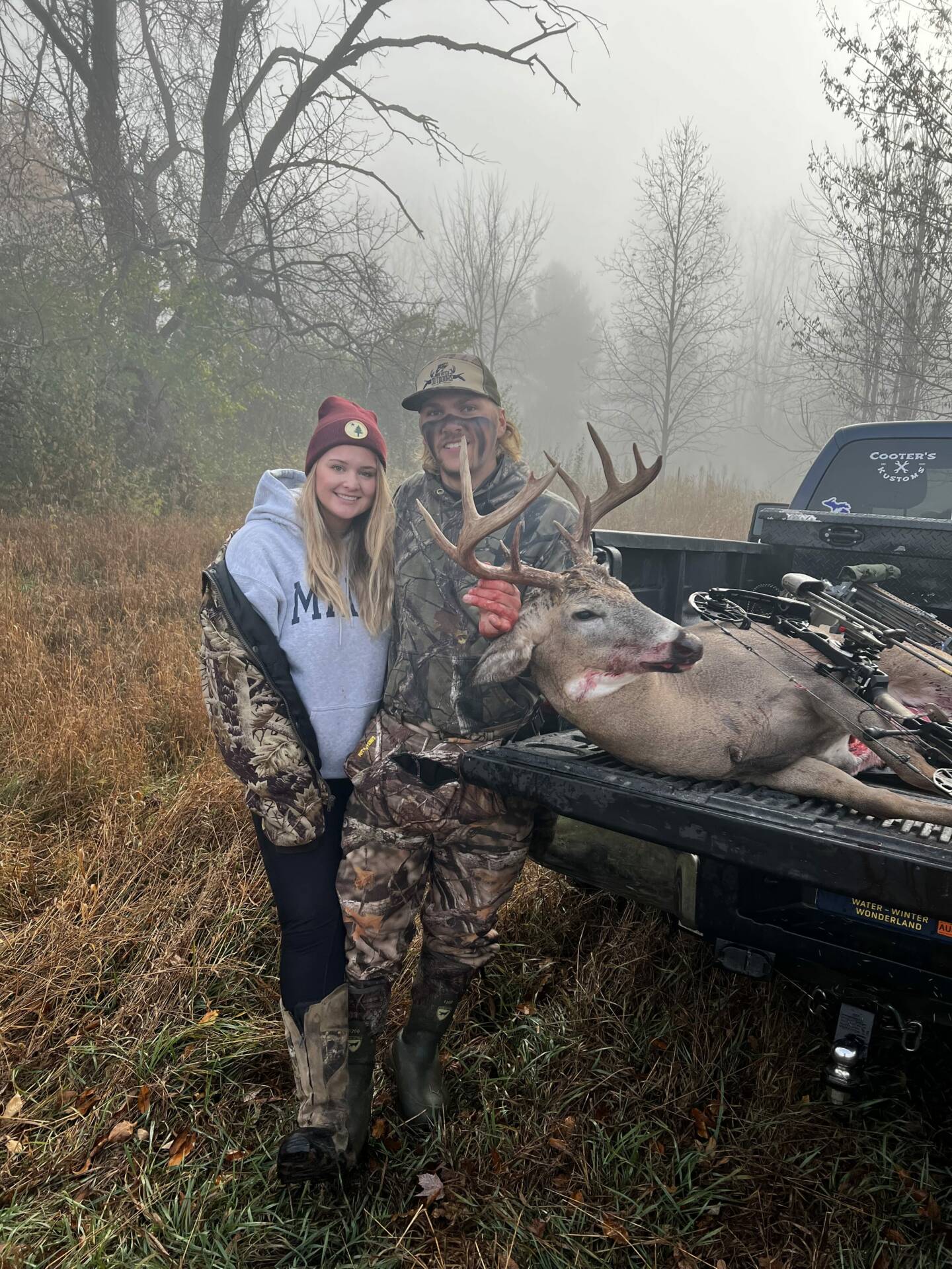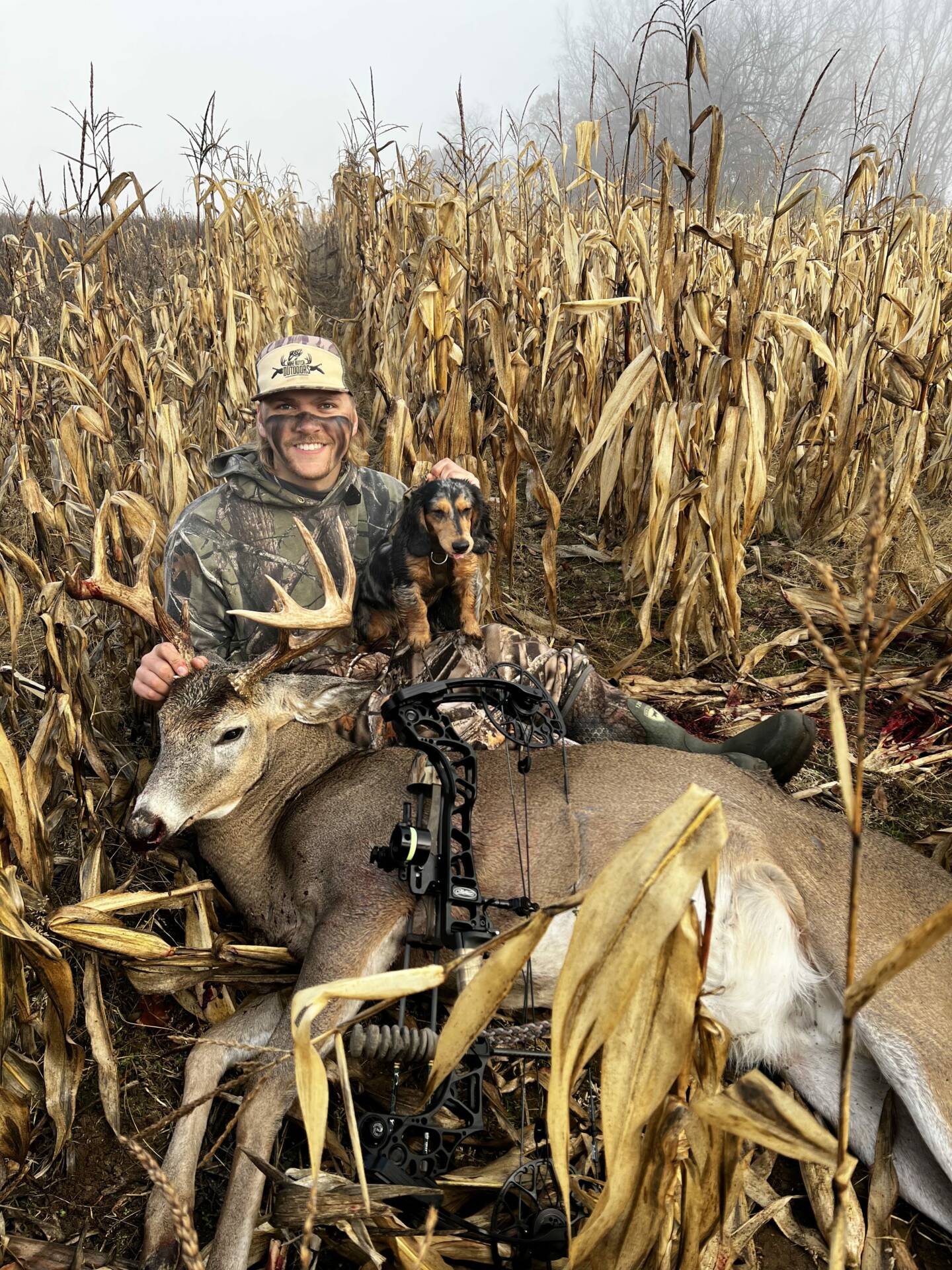 After not seeing this buck since Oct 5th I figured he had been taken already. But at 7:45 in the morning I had a doe come by at 30 yards and less than a minute after, I heard a loud branch break and out came this buck. He started making a scrape at 30 yards so I drew back and he didn’t present a shot for about 3 minutes… once he turned I was able to shoot. He went 50 yards and expired. Biggest buck I’ve taken so far!