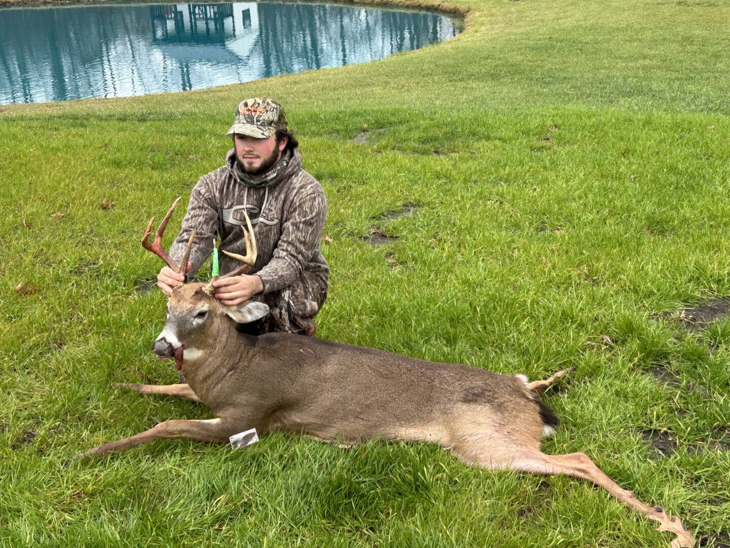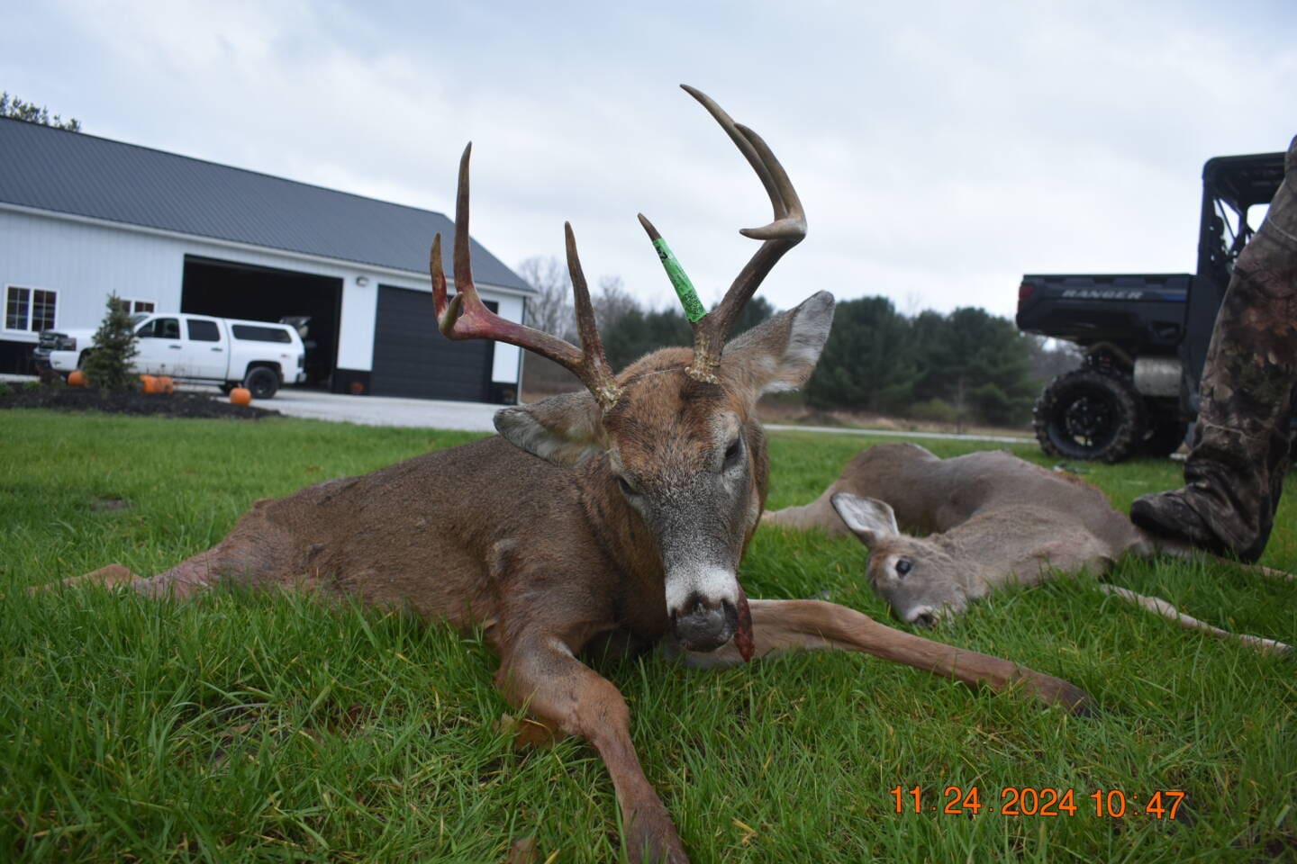 Took a doe around 8am, decided to give it awhile since it was still early , 10 minutes later heard some grunting from the river bottom and he came cruising head down following the does trail. Was able to get a clear shot as he came up out of the bottom.