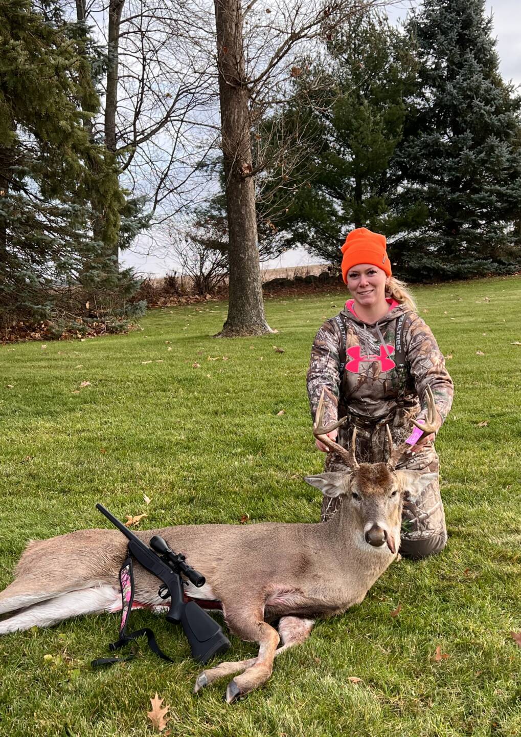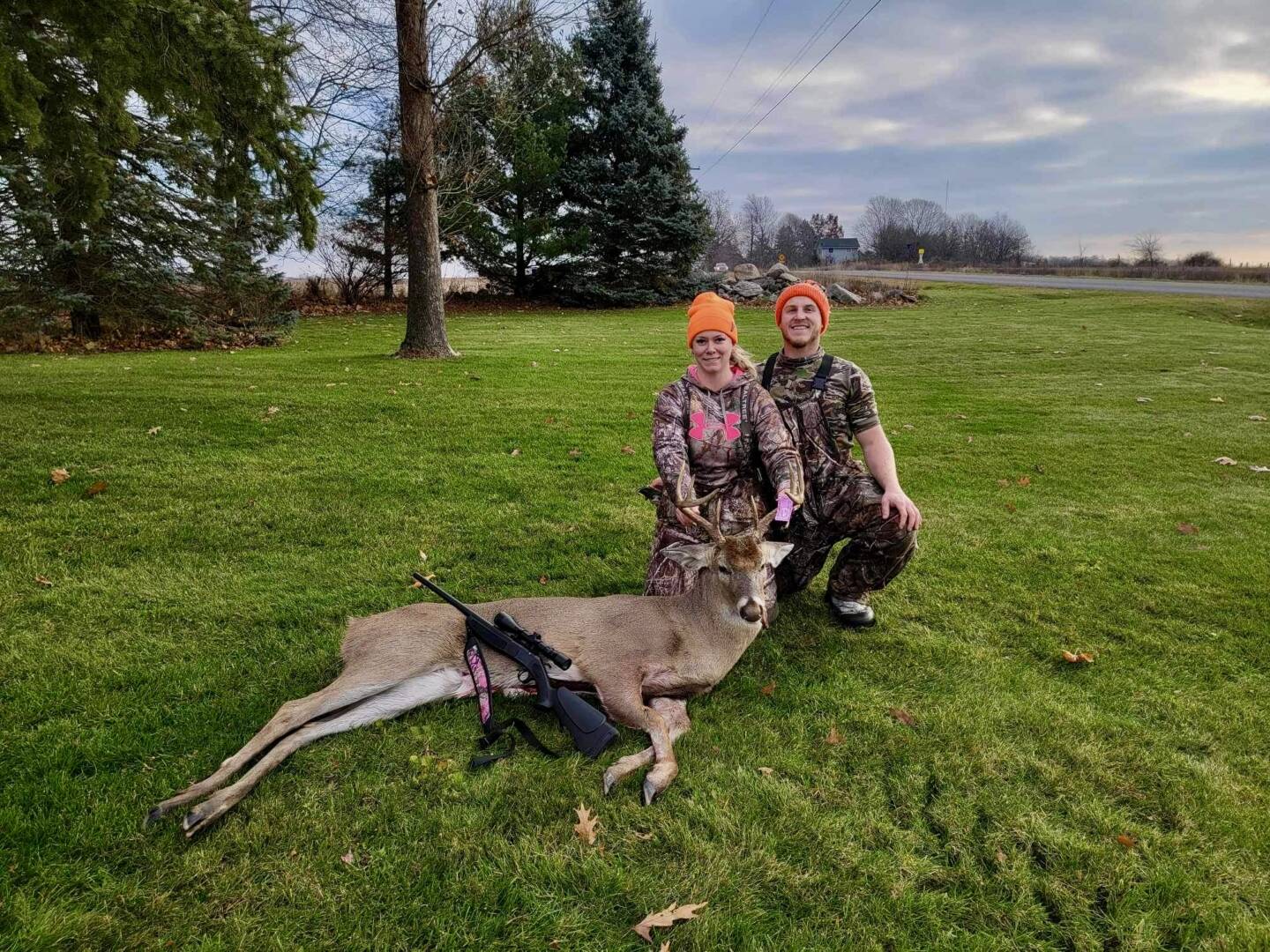 Thankful to have bagged this Thanksgiving morning 9pt. He came limping in after three does – his front leg was broken from a gunshot wound in prior years. He had a broken tine so otherwise would’ve been a 10pt. My fiancé and I just got engaged and this was the first deer he’s been able to witness me shoot!