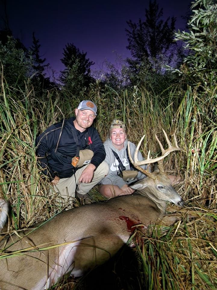 He was my target buck been waiting for him all week only time I seen him was from the house because I had bad wind to sit. Finally came out Monday night posted up perfect full broadside 35yards I had to wait for what felt like eternity for a doe to stop looking at me so I could pull my bow up. All year of planing all came together drilled him double lungs only went about 70yards.
