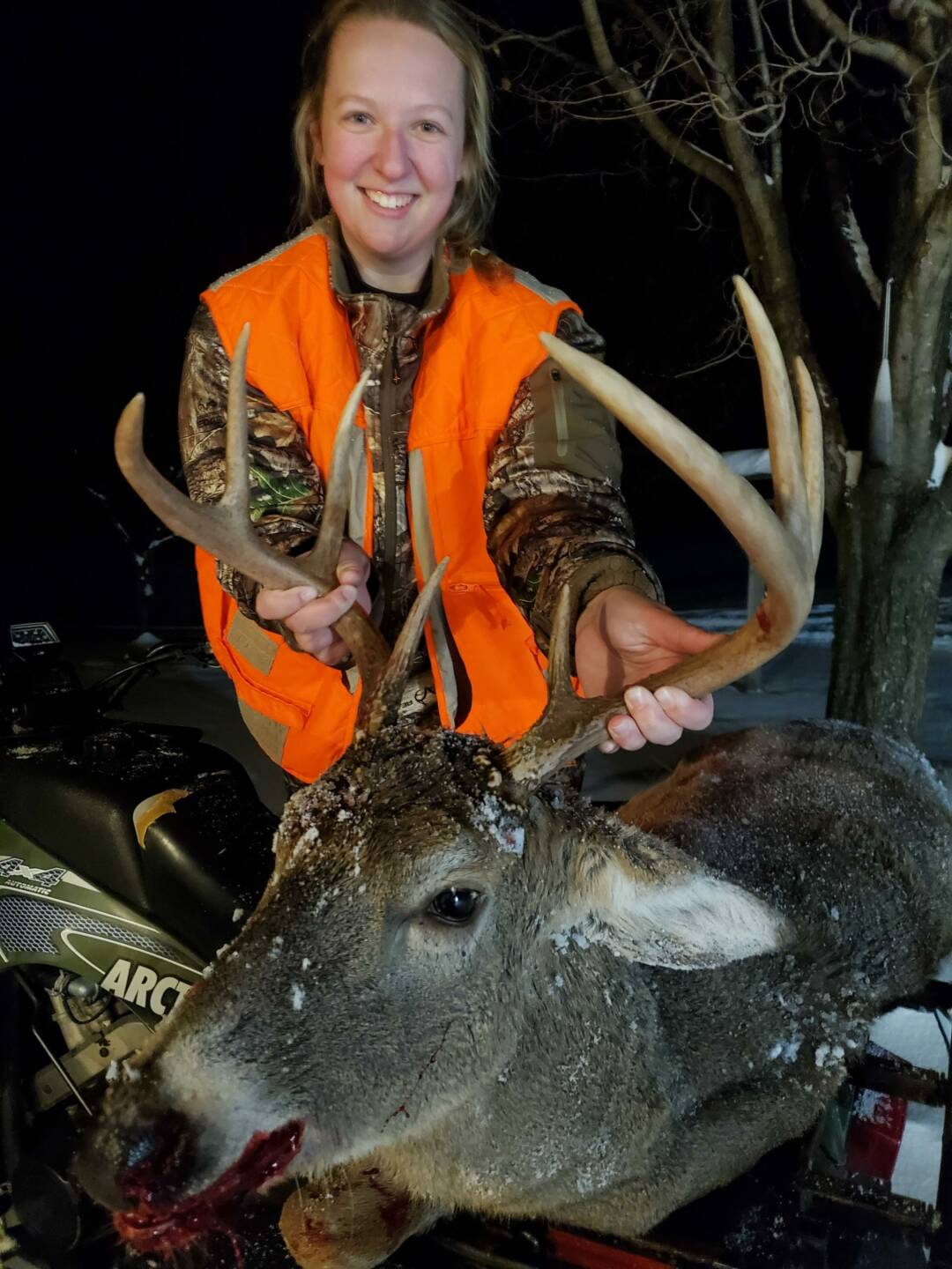 Proud of my protégé, she’s persistent and put the time and dedication in and it paid off. Reagan MISSED this buck opening day of bow season and was sick. She thought she missed her opportunity to get a nice deer. 58 days later and a lot of cat and mouse moments, he made another mistake, and she didn’t miss this opportunity. This is the largest of her 8 bucks by measure and her most gratifying. She is so thankful, if you look closely, those are tears of joy. She was listening to a pack of coyotes trying to locate them and this buck walked out of the woods. One well place shot, and 50 yards of easy tracking in the snow-covered ground, she found him. Never did see any coyotes that night but they were all over on our camera’s.