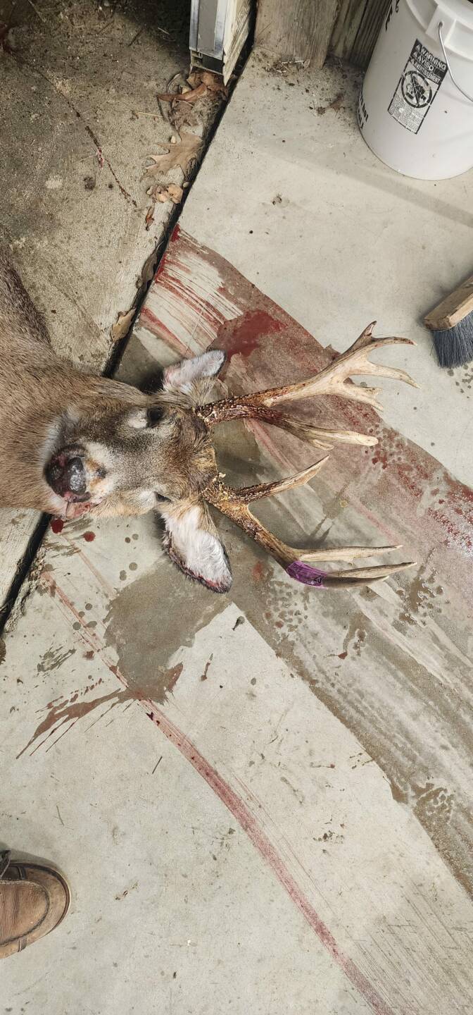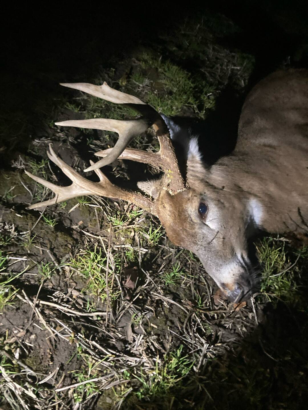 I saw something moving in the woods and I couldn’t quite make out what it was I just knew it was a buck. I haven’t see this one on camera before. He took his time walking my way. It seemed like I had him in the scope forever. I finally put the hammer down once I saw he was a shooter. Didn’t go 20. It wasn’t till I rolled him over and went to grab his front legs that I notice he was missing something.