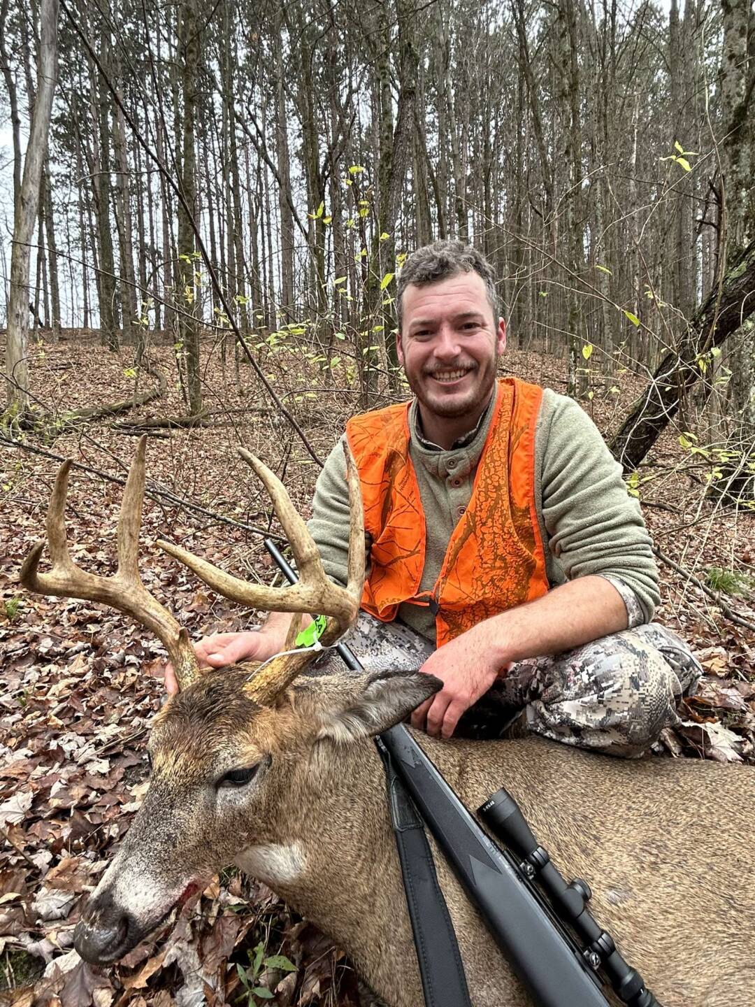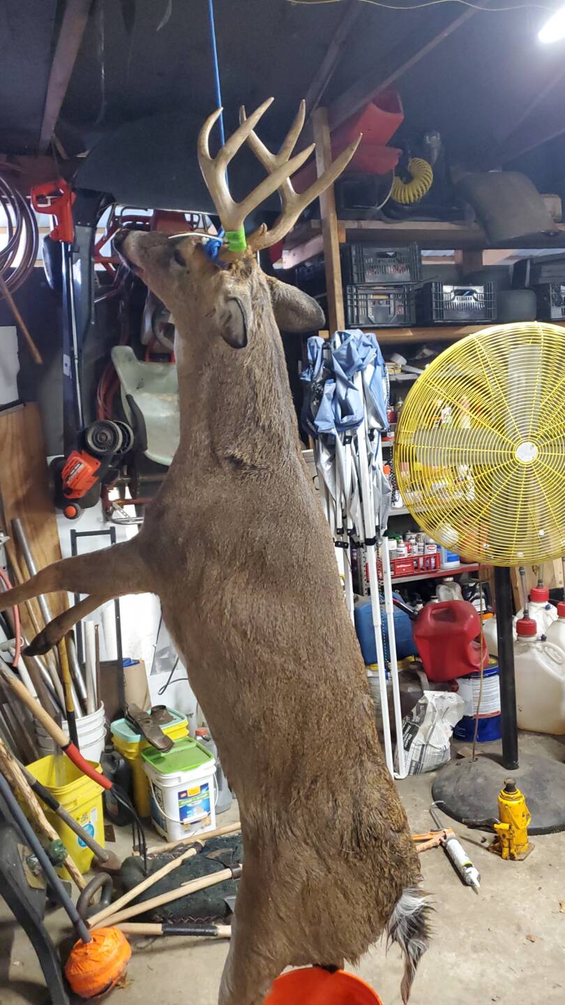 Got to the woods later then normal…6:45. I walk into some heavy pressured state land and decide to stand and listen in the darkness. Thought I had heard some noise in the distance to my left so I walked about 40 yards in that direction and sat a ridge top. At 8:45 I heard a grunt. 9:30 this guy and a doe practically ran into my lap. 5 yard shot with 270. 5 seconds at most from time I seen him till time of shot. Happy with this buck for the area
