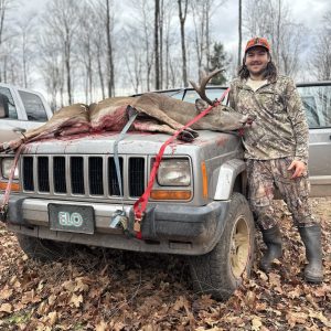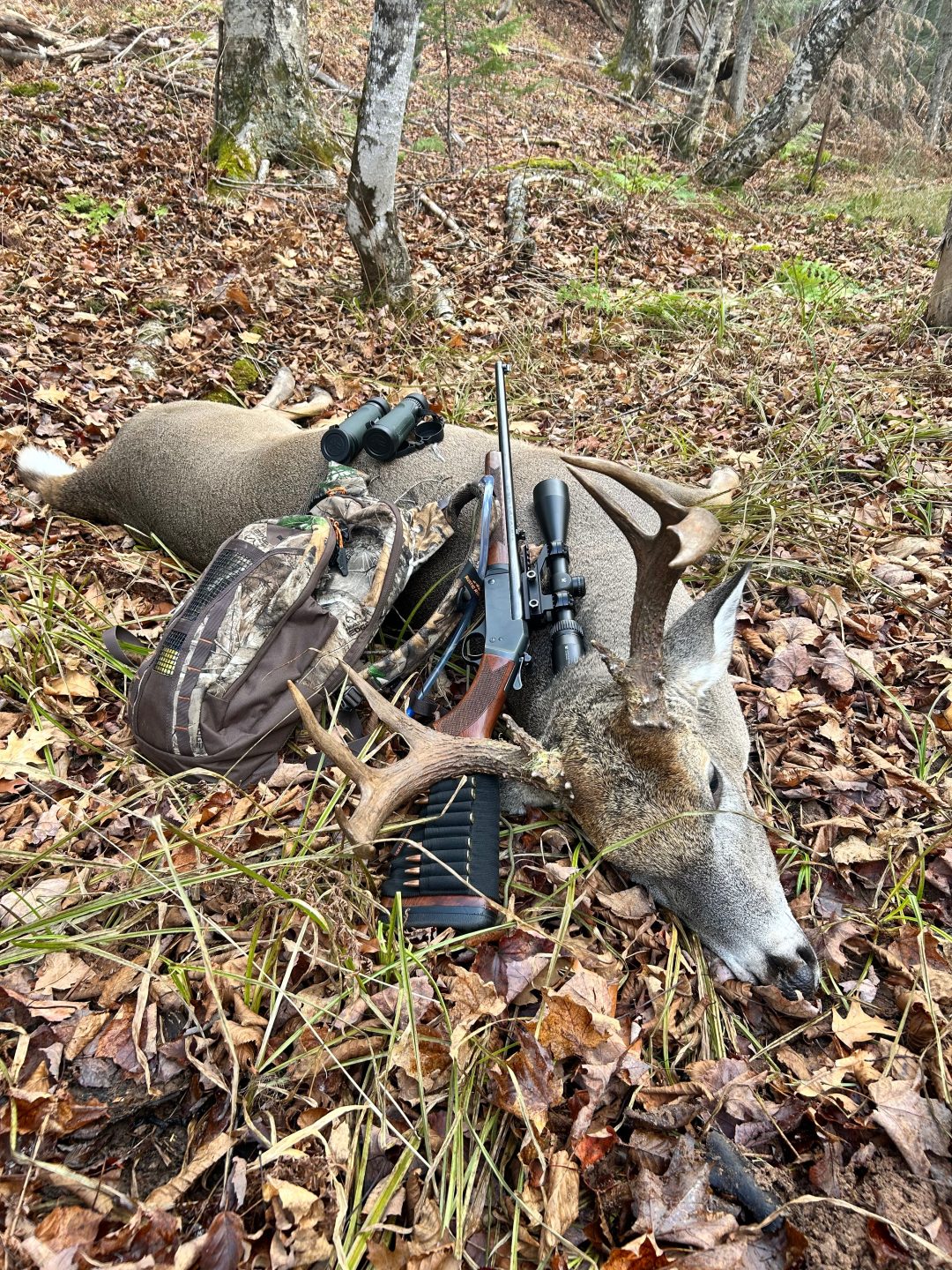 I spent opening day scouting new areas, figured it was a good day to walk since it was windy and noisy in the woods. I found this area and it was lined with rubs and scrapes. I got in early this morning and walked right the edge of the swamp. About an hour in this guy stuck his head out of the long grass to take a drink out of the river and I took the shot at 10 yards. Perfect heart shot. A true U.P. Swamp donkey.