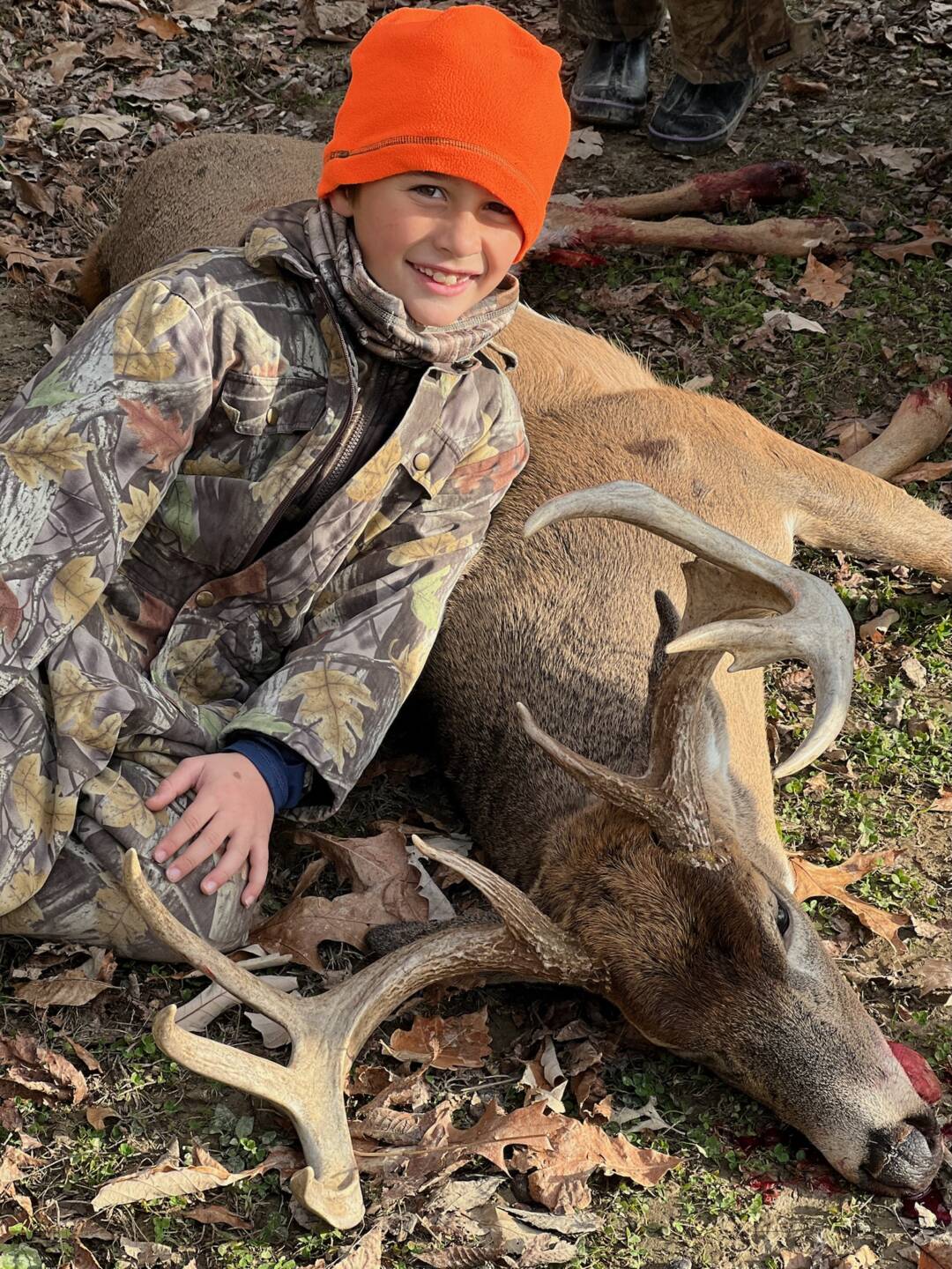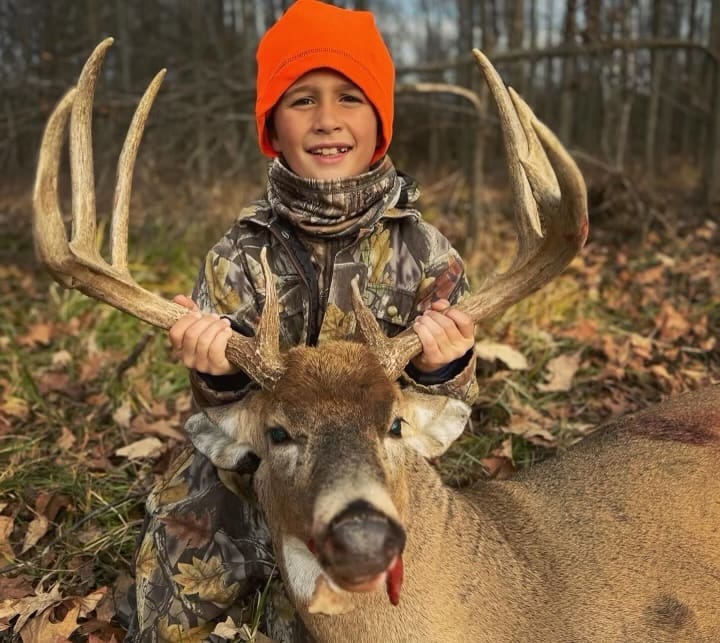 Rowan is 8 years old, he’s been going out hunting with his grandpa for years, and today on opening day he brought home the big boy!