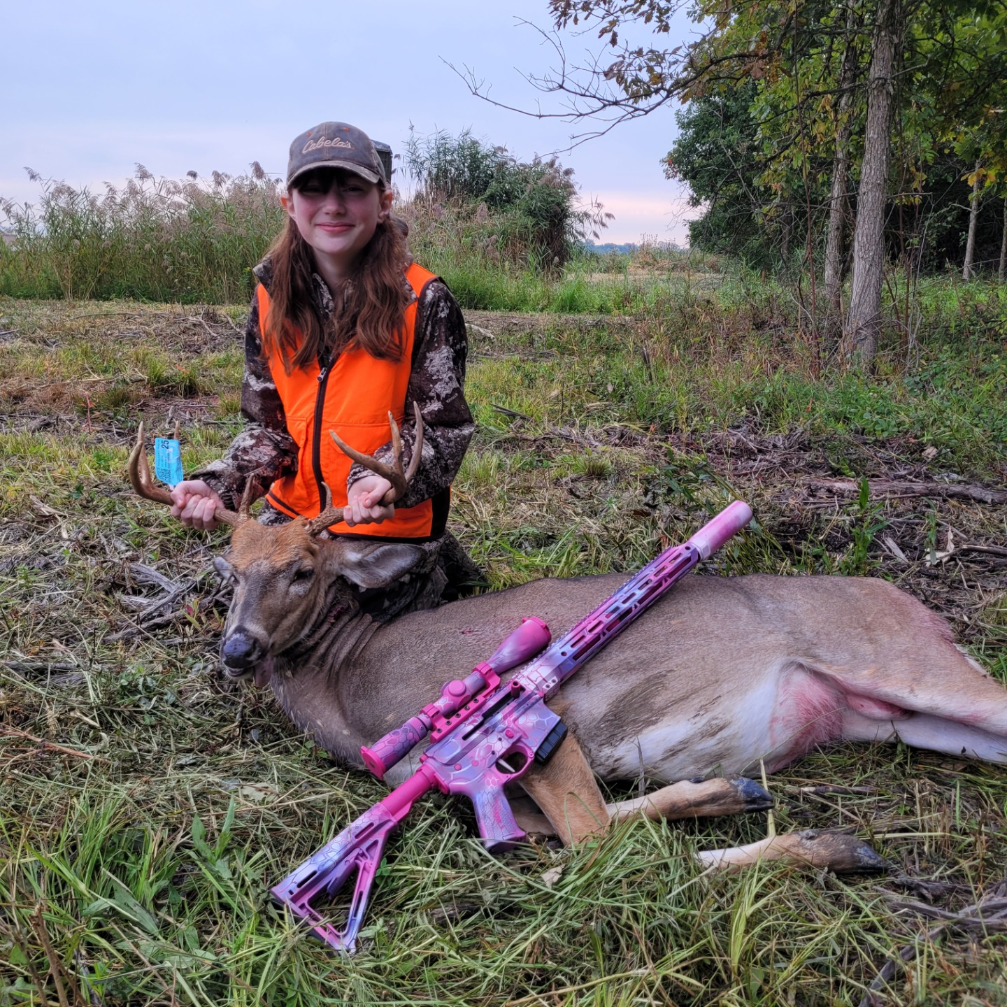 Saw a few does early as daylight was breaking. Dad was glassing the fields around us with no luck. At 9am, I looked up from the game on my phone and he was walking the field edge. I let dad know there was a buck and as soon as he saw the deer, he said “that’s him,” a buck he had been watching for the last 2 weeks. I steadied my aim, got my nerves under control, and shot. 100 yards out and he dropped immediately with my custom built 350 Legend.