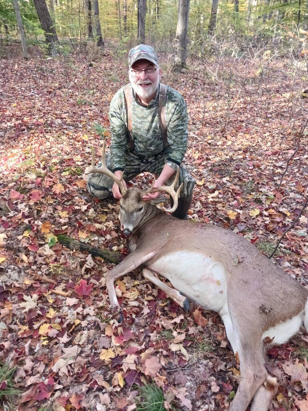 Went out this morning first time in this tree,seen 2 scrapes on way in. About 20min after daylight seen him at 35yds didn’t have a clue I was there. At 20yds he stepped behind a tree I drew and shot when he come out the other side. Went 40yds an piled up within sight.
