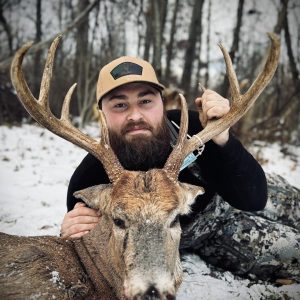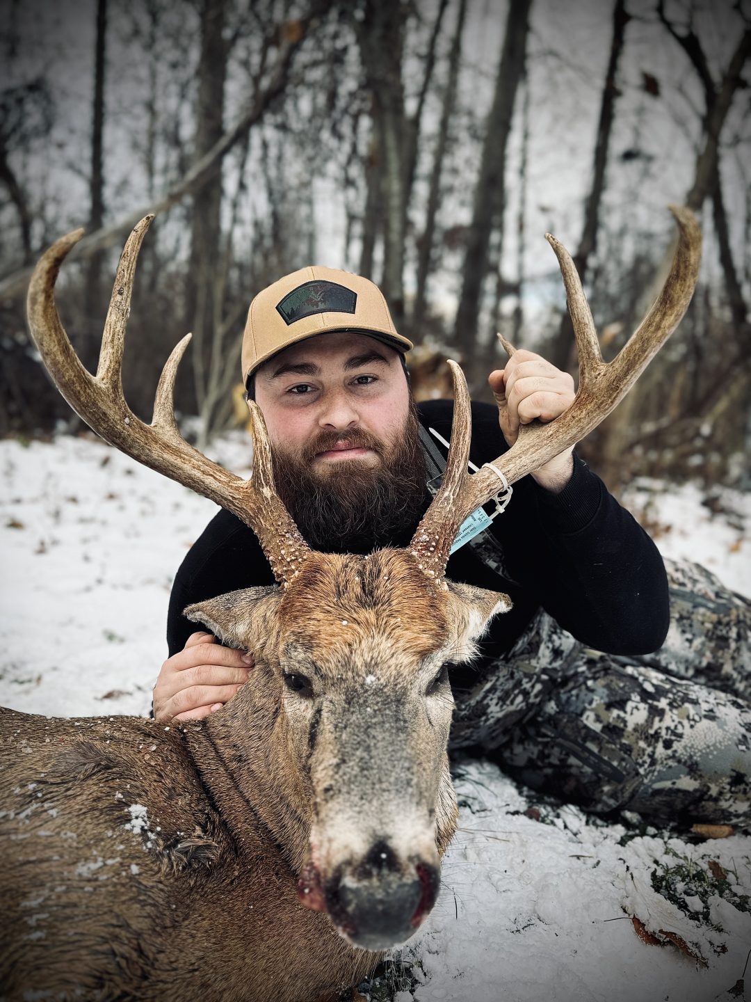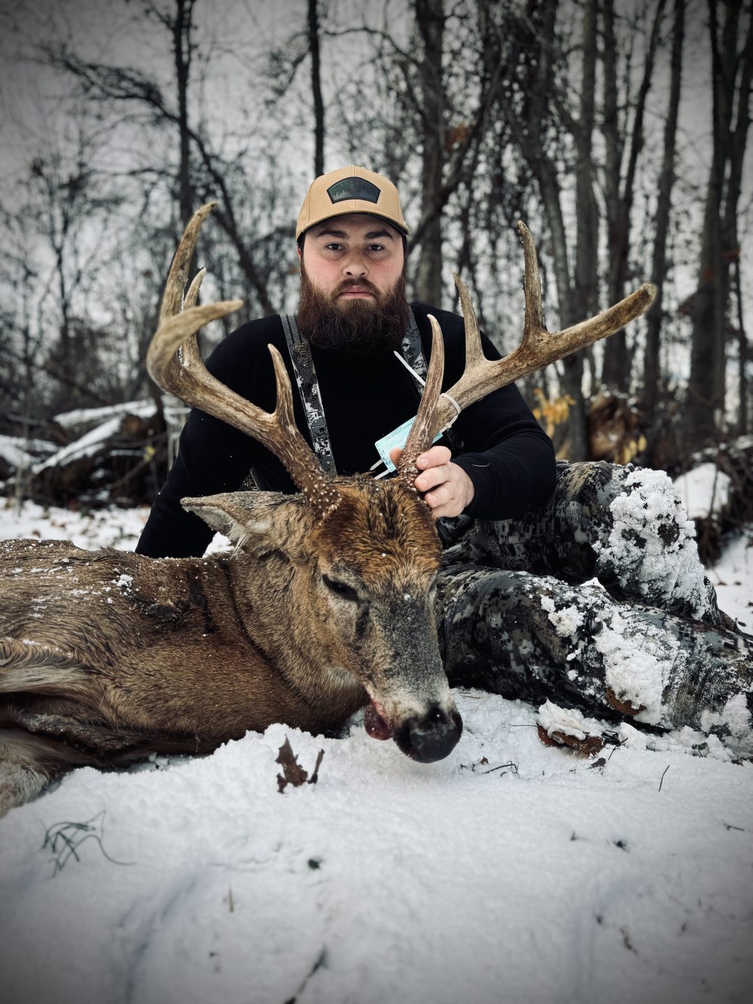 A great thanksgiving buck! I waited on this guy in 30-50mph winds for 5 hours straight. I accidentally fell asleep against the tree waiting for him while he was bedded. When I woke up he was broadside standing on my side of the property so I took a coordinated scapula shot with our new line of 350 ammunition and he dropped like a rock. Happy holidays to all!