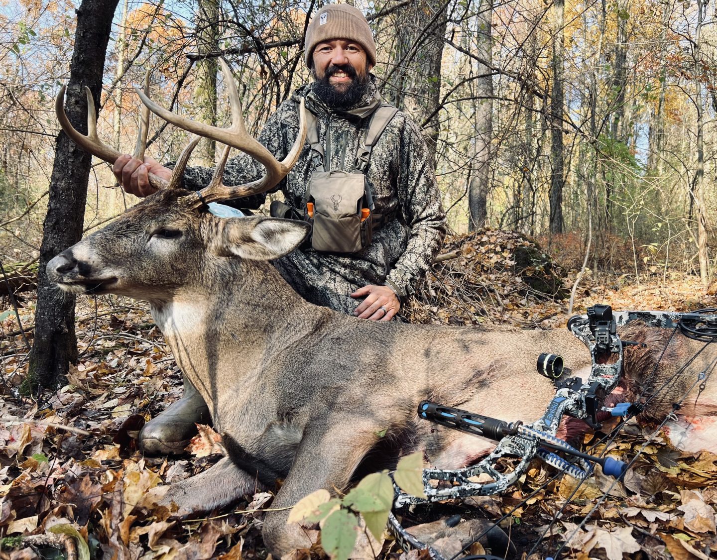 It was a magical day in the woods this morning!! Every bow hunters dream, I was stuck in the middle of a complete rut frenzy, chasing, fighting and a couple hot does had several bucks running ramped!! One of the hot does walked this guy right into my lap at 1030, giving me a 15yrd shot!!