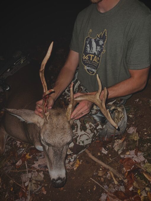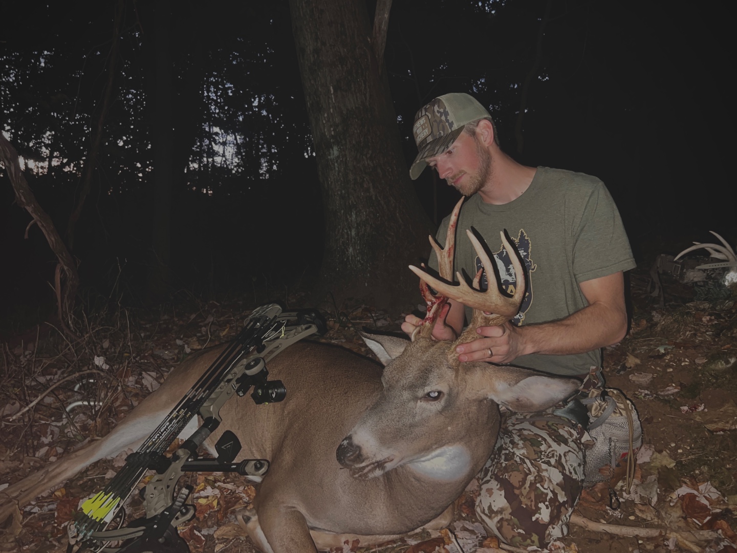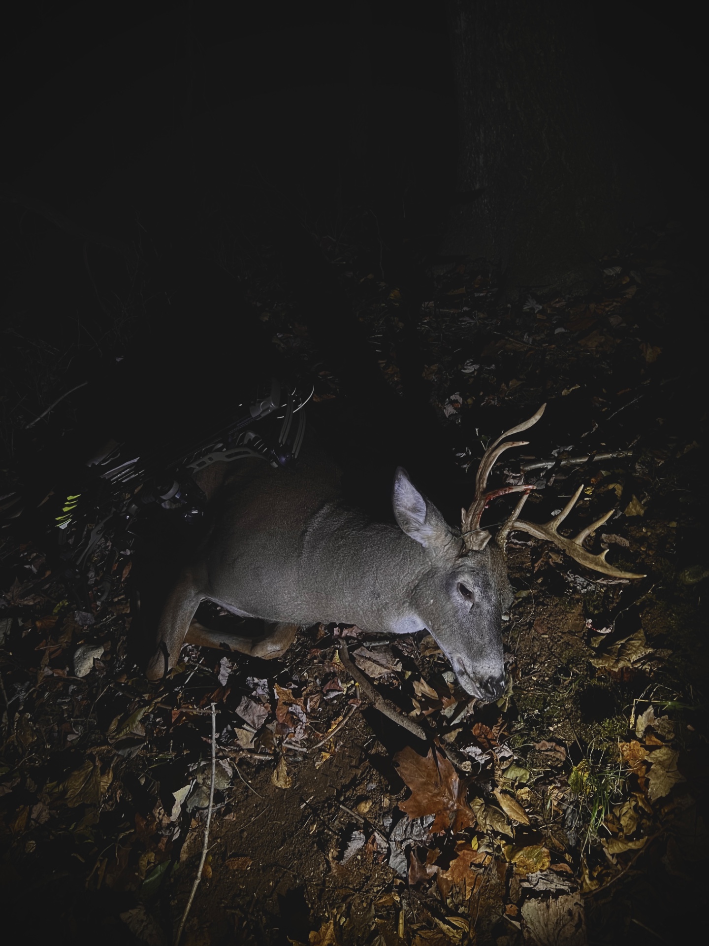 Went in blind to an area that has produced in the past. Tickled some antlers together and after a few minutes this guy came out of a bedding area a little too curious. He hit a few trees on his way over to me, gave me ann opportunity to draw and eventually stopped to rub a tree 23 yards away quartered to. I squeezed off and watched my nock sink right into his shoulder and stick in the back of his sternum. He broke the arrow off ran about 30 yards and stopped to look back. After about 10 seconds he started to tip and passed about 30 seconds later. I feel beyond blessed to take another one of God’s beautiful creations we all love chasing.