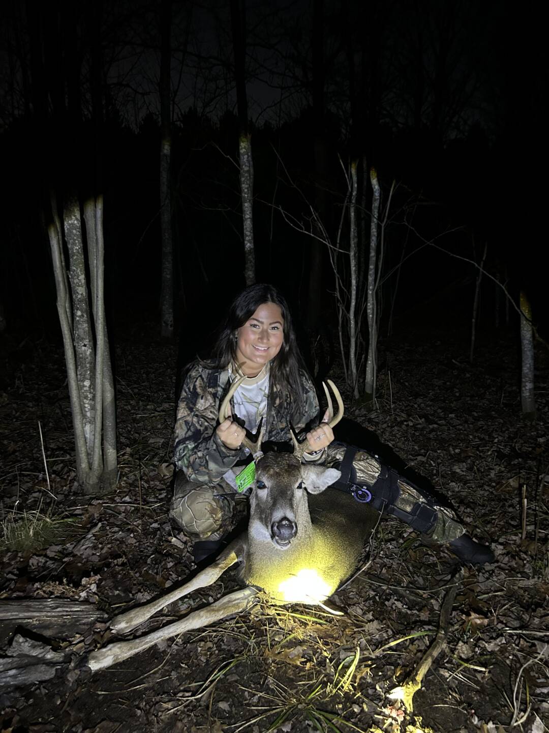Two weeks post op from a knee surgery and still made it happen! Todays sit was a rough one for me but sure had some excitement before dark. Had a perfect view of his head/neck & he took one step forward just so I could get the perfect shot. Took a deep breath, closed my eyes & said “God Bless America”! Dropped him at about 40 yards!
