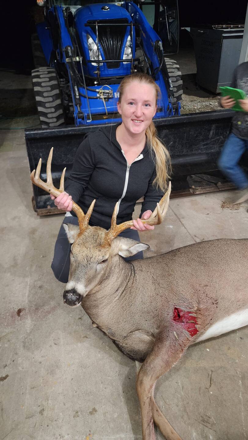 I have been watching this deer since September on my trail cam, the last time being in the middle of October, When I went out that evening I never thought it would be the day I finally got a shot. When he stepped out into my feild, grunting and lip curled. At the time I had a few doe in my feild and a young buck, a piebald that truely was amazing to see. He came running after the doe pushing everyone into the woods, I thought I lost my chance. A few minutes which felt like an hour, he stepped back out at 30 yards. The rest is history, there were tears, laughter and celebration! My very first 10 point, 18in spread. I’m thankful to not only provide for my family, but them being there for such a moment of happiness. A moment I will never forget!