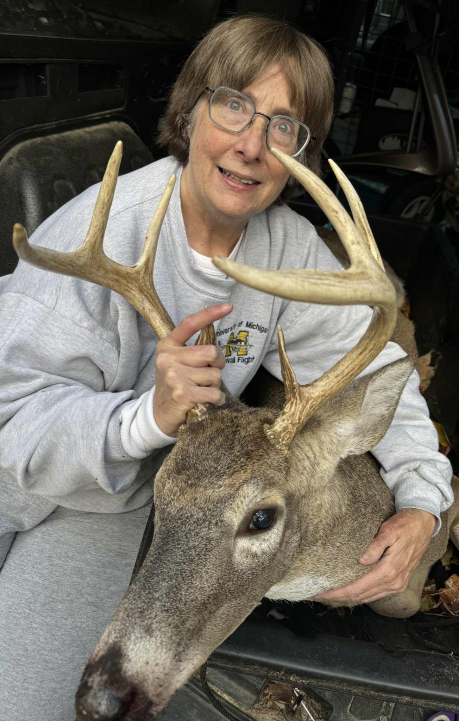 I usually hunt in the evening, but woke up at 4:30am and couldn’t get back to sleep. So, I got dressed and went out to my blind at 5:30am. I’d seen this buck on my trail camera all month, but never in legal light. This morning he had does on his mind and up his nose. I was waiting! Not a monster but not bad for a disabled senior citizen.