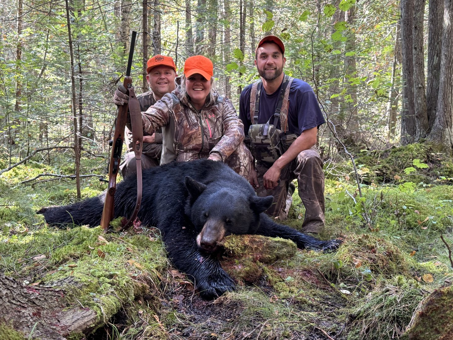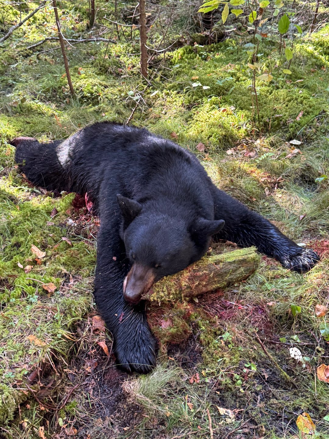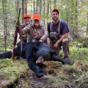 Had a 6 day hunt planned between me and my husband using Blue Plague Guide Service. We were tagged out by noon on the first day. He got his around 0830 and I got mine at noon. Dogs got mine treed. Live weight 251lb, dressed 215. First ever bear!!